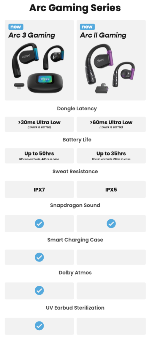 The holy grail of audio is True Wireless (that is to say, no wire between the two earbuds), but with solid battery life and whole sound. Top-tier audio team Cleer thinks they've cracked that with their newest pair of audio devices, the Arc II Gaming and Arc 3 Gaming. When a company puts the word "Gamer" in their product name, we want to know what make it different. Let's get that from the Cleer team themselves: