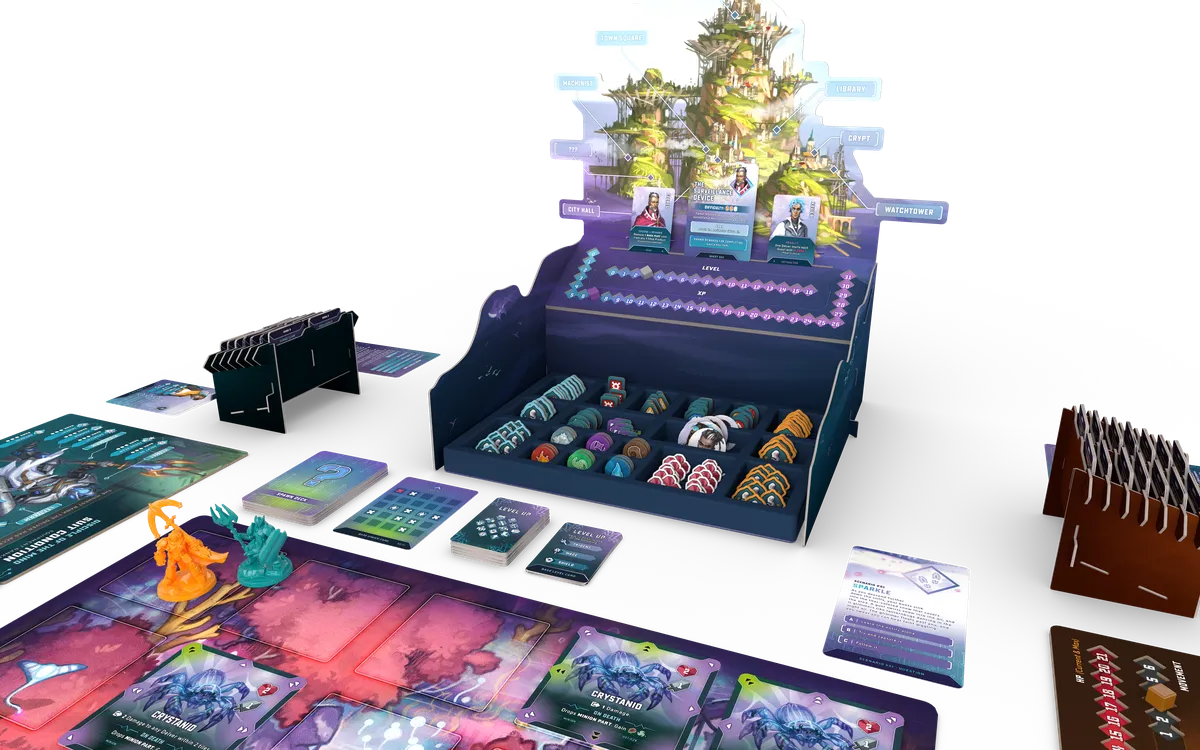The game unfolds across a 30 hour branching campaign where you'll weave your wave through a 200+ page fully illustrated story book and hundreds of cards and tokens. Beyond this, we've designed the campaign to be highly replayable - the game comes with a newgame+ mode built in, and alongside this is an endlessly replayable Onslaught mode.Gone to Gaia blends tactical, puzzle-like combat with deep narrative design. Each wave is a test of resourcefulness, teamwork and ingenuity. Each Quest throws waves of enemies at you in randomized positions, and you'll weave a path through them, gaining XP and elements that allow you to level up, gaining powerful new abilities.