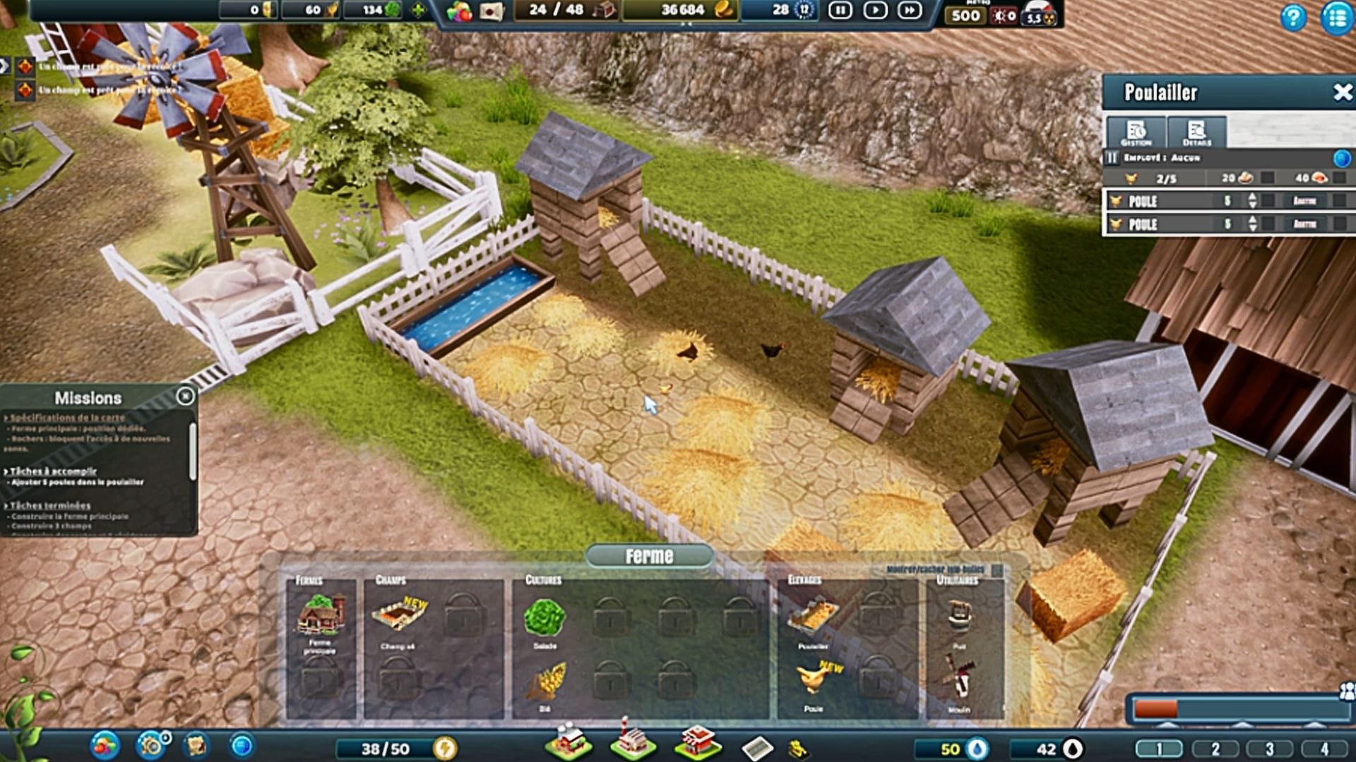 - Micro-management: Plant and harvest crops, organize market stalls, sell goods, assemble machines