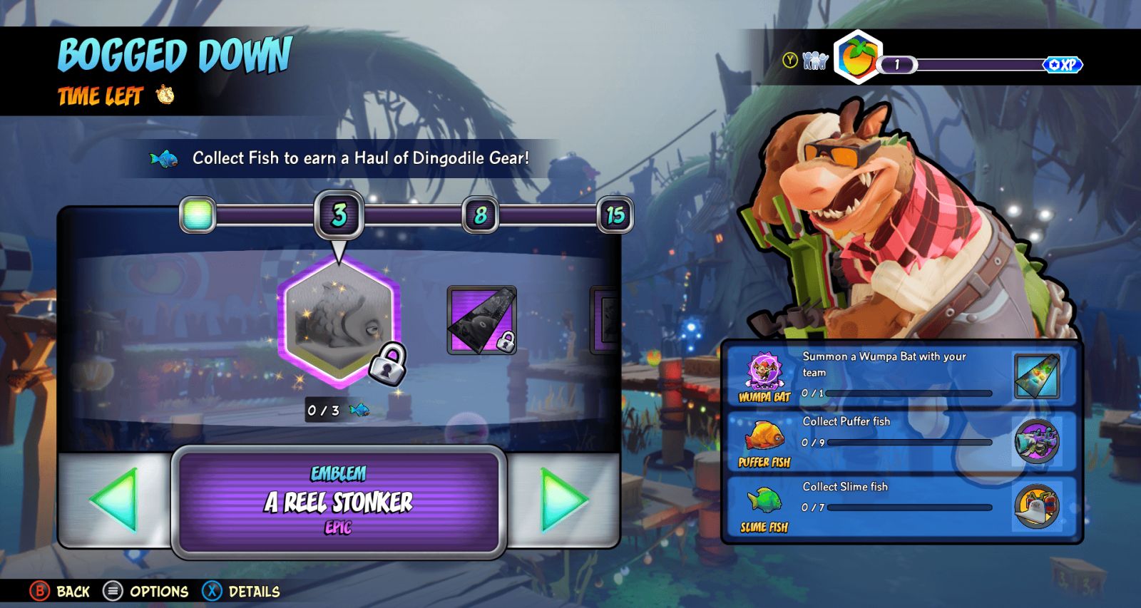 On Thursday, July 20th at 8 am PT, we’ll be debuting a brand new swampy map called BOGGED DOWN. I don’t want to give away too much about this new map and its unique Relic Stations, but expect it to mix up your approach to Wumpa Victory! New maps will be made instantly available to all players upon release. To celebrate its debut, we’ll be running a new event called “Bogged Down” where you’ll encounter a variety of collectible fish scattered across all maps. Collecting these fish will earn you fun, exclusive cosmetic rewards.