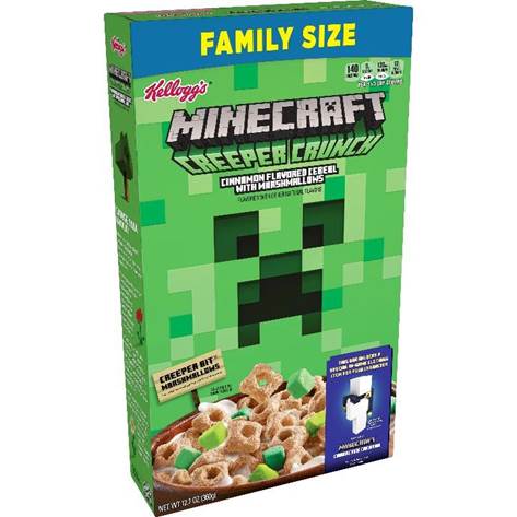 With a global audience of over 126MM players per month, Minecraft is bringing the creative, adventurous spirit of its wildly popular game to another platform — cereal! Introducing Kellogg’s® Minecraft Creeper Crunch Cereal; a tasty, cinnamon-flavored cereal featuring green square-shaped “Creeper Bit” marshmallows that delivers the vibrant world of Minecraft.