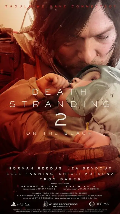 DEATH STRANDING 2: ON THE BEACH sees Norman Reedus, Léa Seydoux, and Troy Baker return to Hideo Kojima’s genre defying universe. They will be joined by Elle Fanning, Shioli Kutsuna, and Academy Award-winning film director George Miller.