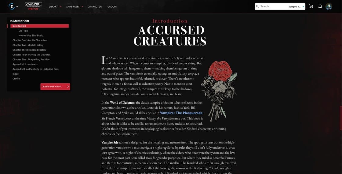 - Craft Ancilla Characters with enriched rules designed for advanced play — includes an optional setting in the Nexus character builder to use these alternate rules