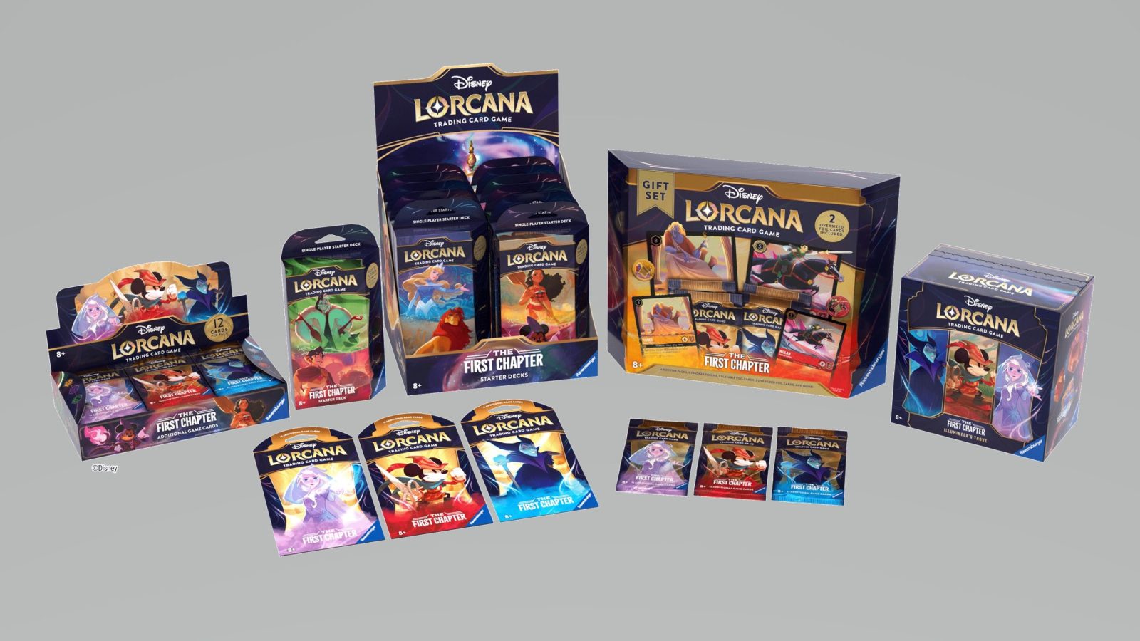 Disney Lorcana: The First Chapter will include more than 200 game cards that will be collectible via three starter decks, a gift set, booster packs and the “Illumineer’s Trove.” To help further immerse players in the world of Disney Lorcana, themed playmats, card sleeves, deck boxes and card portfolios featuring Disney Lorcana art will also be available at launch.
