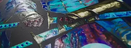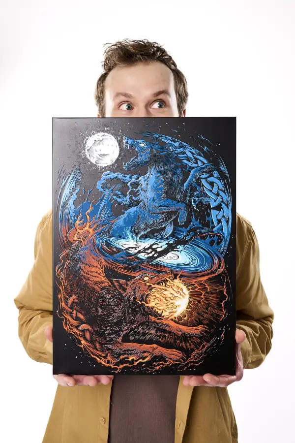 Their exceptional printing skills, combined with meticulously curated patterns and intricate layers of varnish and relief has unlocked a third dimension to Displate and brought interesting elements in each graphic to life. This innovative approach achieves mesmerizing effects reminiscent of watercolor painting, glass reflections, or a matte fabric finish, ensuring each Textra is a masterpiece in its own right.
