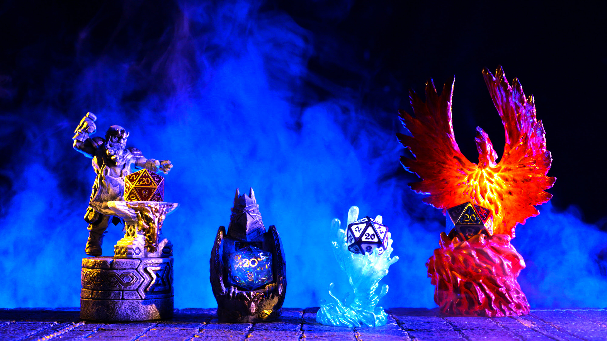 Presenting: Reliquaries – a line of hand-painted dice thrones launching November 3rd on Kickstarter. Finally, a beautiful new way to display your gaming dice at home and on the game table. Reliquaries will be offered in a variety of fantasy themes, purpose-made to elevate and celebrate your dice. Our master artists have sculpted and painted each Reliquary to capture the spirit of the given theme. More than a dozen different designs ensure there’s a distinct Reliquary to match nearly any special die.