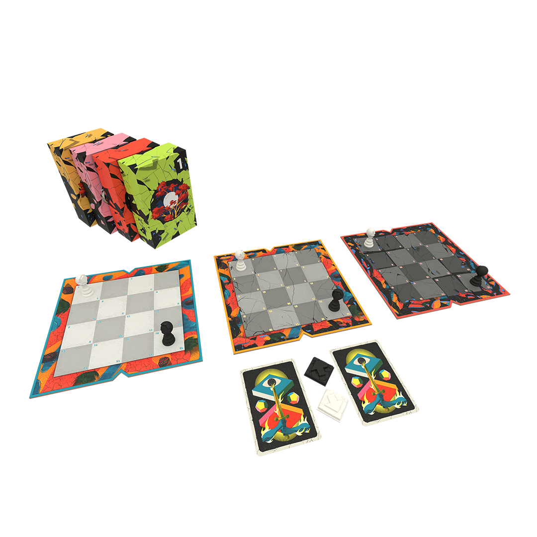 - Innovative time travel gameplay occurs simultaneously on three different boards representing the Past, Present, and Future!