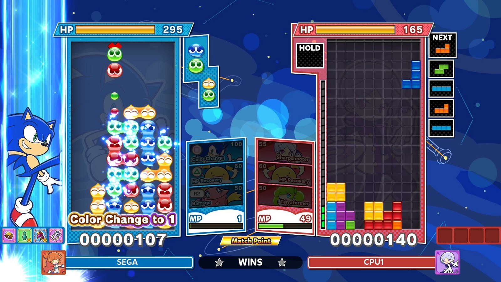 Following the rules of Skill Battle mode, players will create their team from the now-expanded roster of characters and choosing a party with complementary skills is key to a winning strategy. As you play, you’ll pop Puyos and clear Tetriminos, shaking Garbage Puyos loose and causing the boss to lose HP. If their HP hits 0, you win!