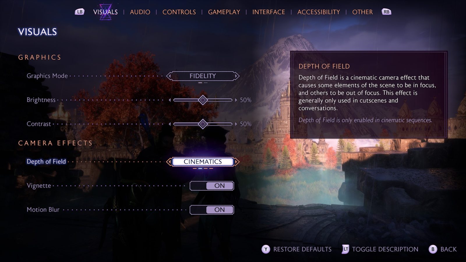 Beyond the UI and HUD, there are a few more options regarding the game’s visual effects. For anyone who deals with motion sickness, there is a Persistent Dot Option and Motion Blur can be fully turned off. The in-game Camera Shake can also be adjusted from 0-100%. Additionally, there’s an FOV slider in the graphical settings.