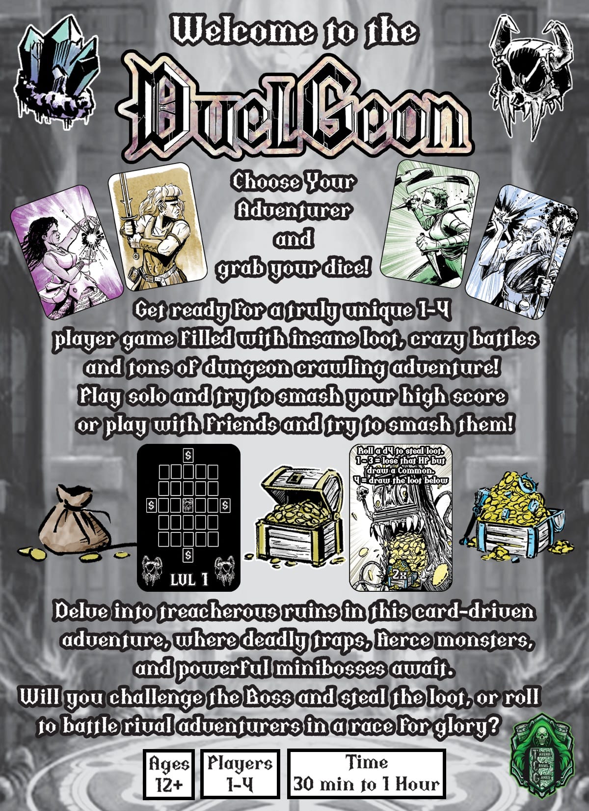 They say friendship is precious... but loot is priceless! Experience epic rogue-like dungeon delving in a pocket-sized package. Outmaneuver friends and foes in this PvPvE adventure to secure the best loot and escape the DuelGeon as the ultimate victor! Roll the dice, explore, battle, and extract in DuelGeon!