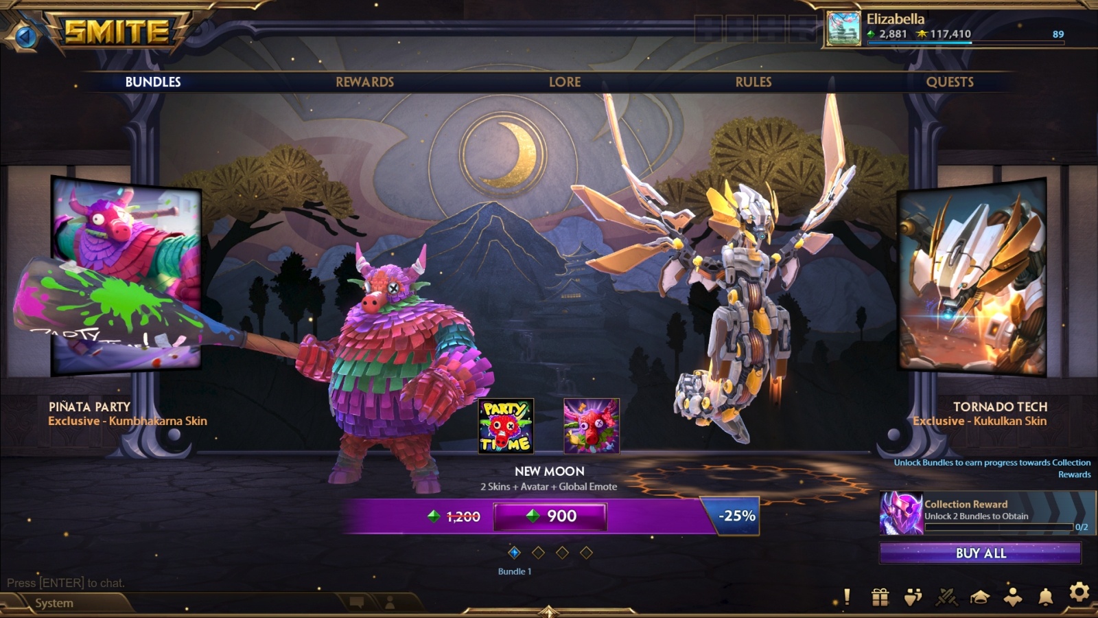 Smite has also added another mini event called New Moon, with new skins unlocking periodically. Piñata Party Kumbhakarna and Tornado Tech Kukulkan are the first to make an appearance.