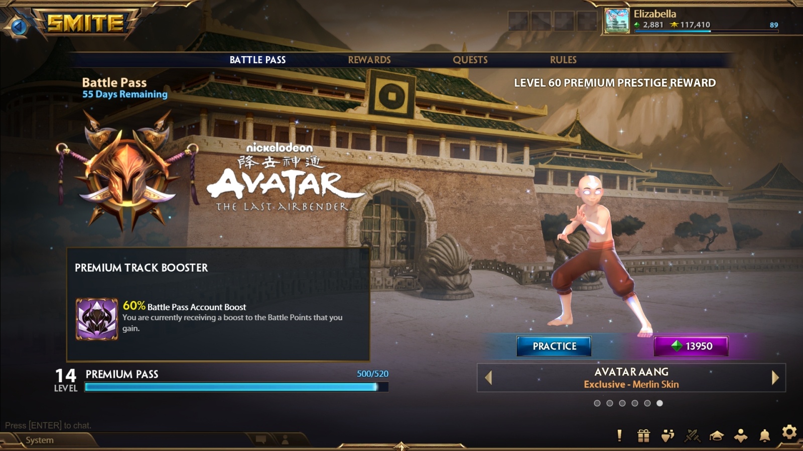 - Aang in the new Avatar the Last Airbender battle pass in Smite’s 7.7 patch