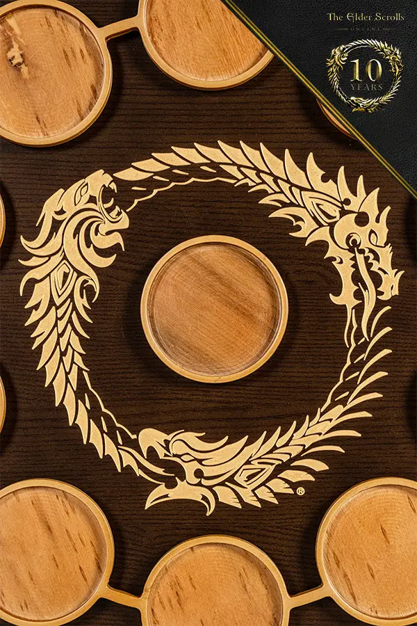Holly Hudspeth, or resident Elder Scrolls Online addict, has been playing the game since the beta. She’s also reviewed every expansion since launch, having spent hundreds if not thousands of hours in Cyrodiil. She’s also remarkably difficult to shop for…but I think I just found a must-have gift for her and any other ESO fan. To commemorate the 10th anniversary of Bethesda’s incredibly successful MMO, the team is celebrating with an assortment of 11 coins, each representing the 11 major expansions you see here: