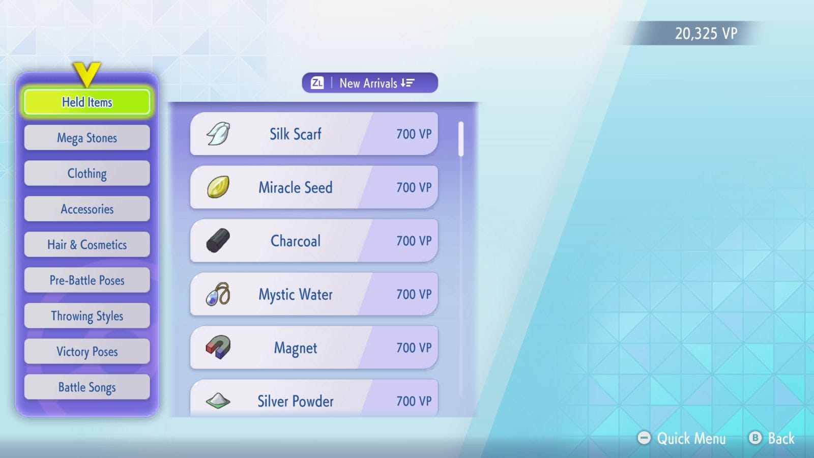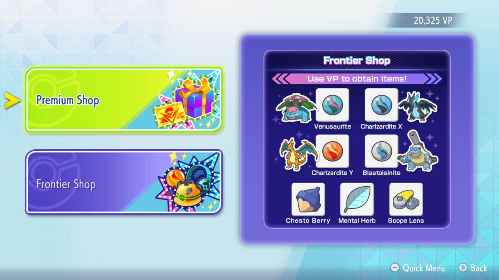Certain rewards obtained with the Premium Battle Pass, such as Mega Stones, can also be purchased from the Shop screen in exchange for Victory Points (VP).
