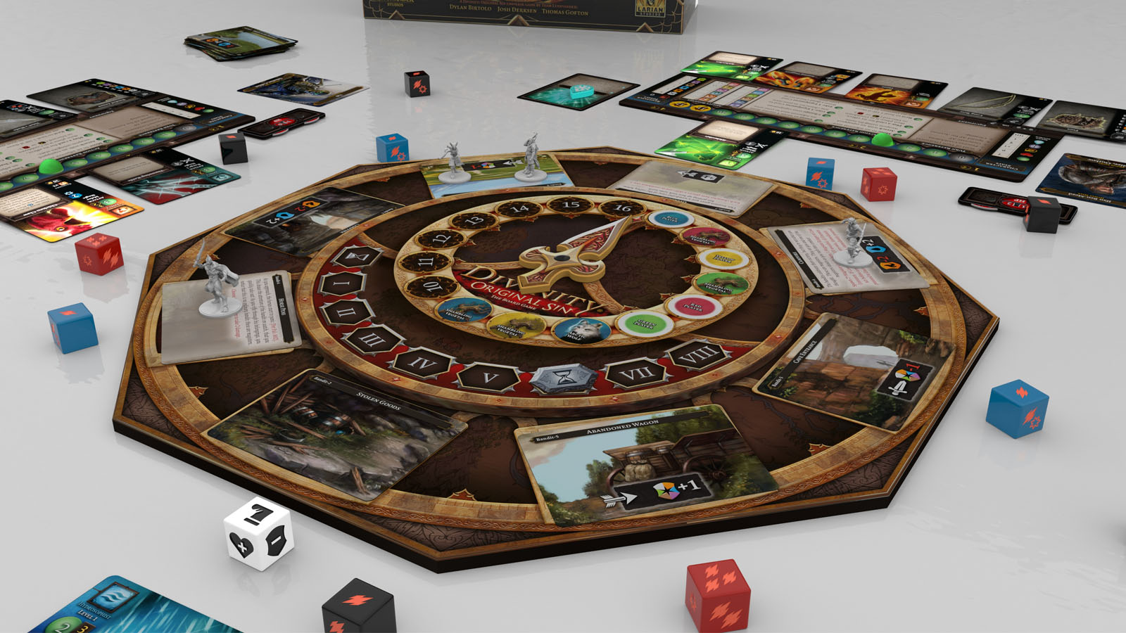 Divinity: Original Sin – The Board Game tells its story with the help of one Game Board, four Player Boards, 16 Dice, 270 Tokens, 851 Playing Cards as well character and NPC Miniatures, and a completely original Chronical System that allows player choices to not only impact their own adventure but also the future direction of the board game.