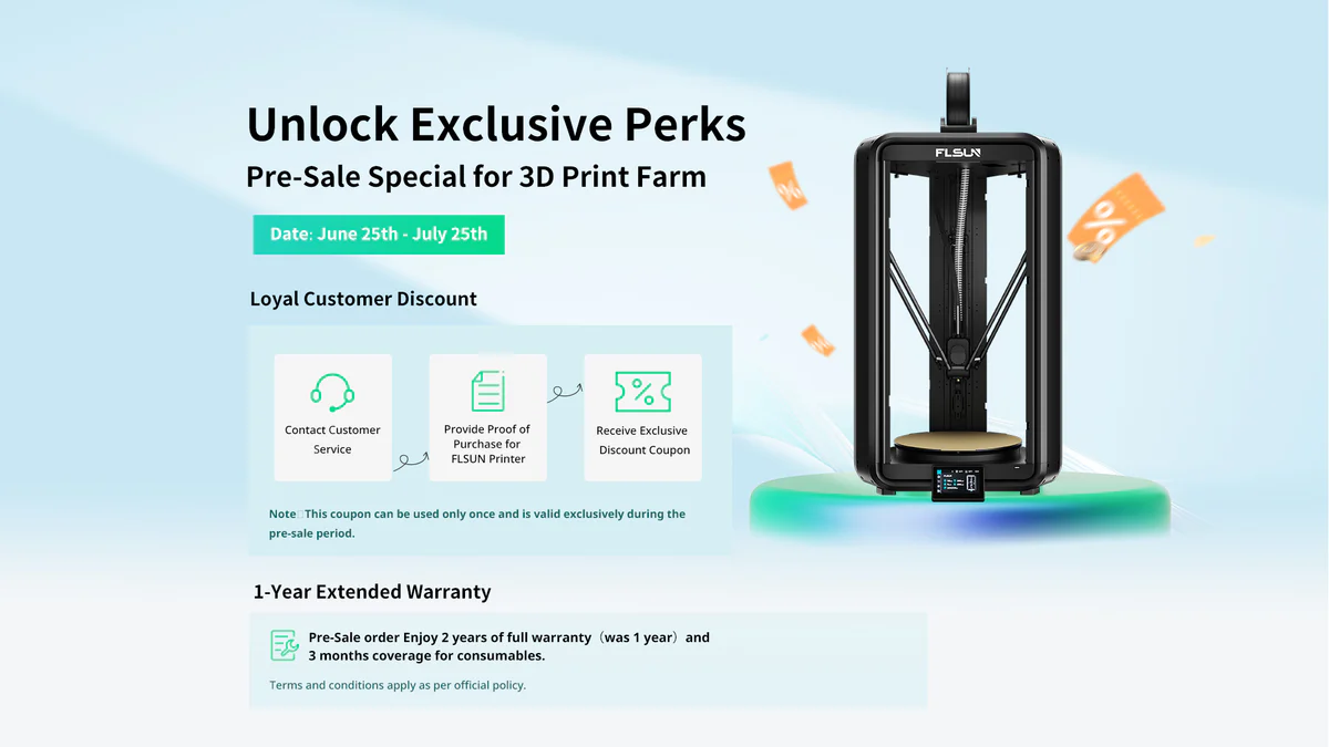 If you have a FLSUN 3D printer, you can contact customer support to get yourself a coupon to get an exclusive discount coupon, as well as a FREE extension on your warranty extending from one year to a full two years of support – three years if you happen to be in Europe. Of note, this is ONLY available during the pre-sale period, so consider this a bonus.