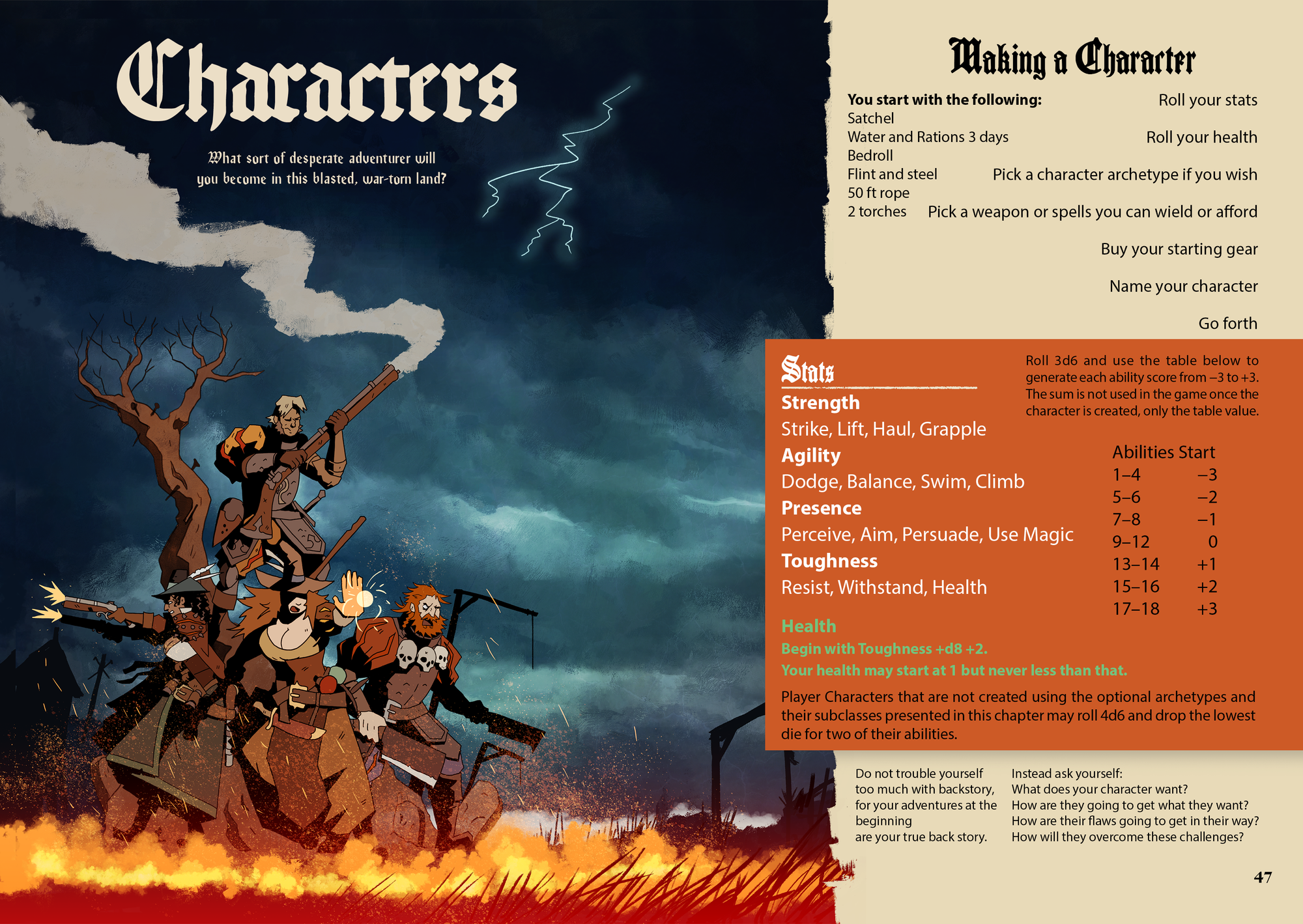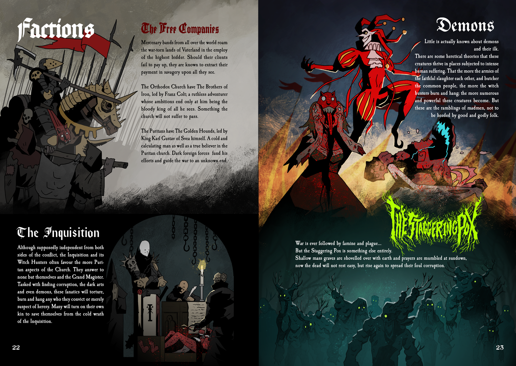 Embark on a dark and daring journey where death and destruction lurk around every corner. The gunpowder- and witchcraft-infused game is a complete stand-alone RPG based on and compatible with the multi-award-winning apocalyptic heavy metal RPG MÖRK BORG. This action-packed, rules-light, art-heavy OSR game offers swashbuckling adventure and gothic folk horror in an unholy blend.