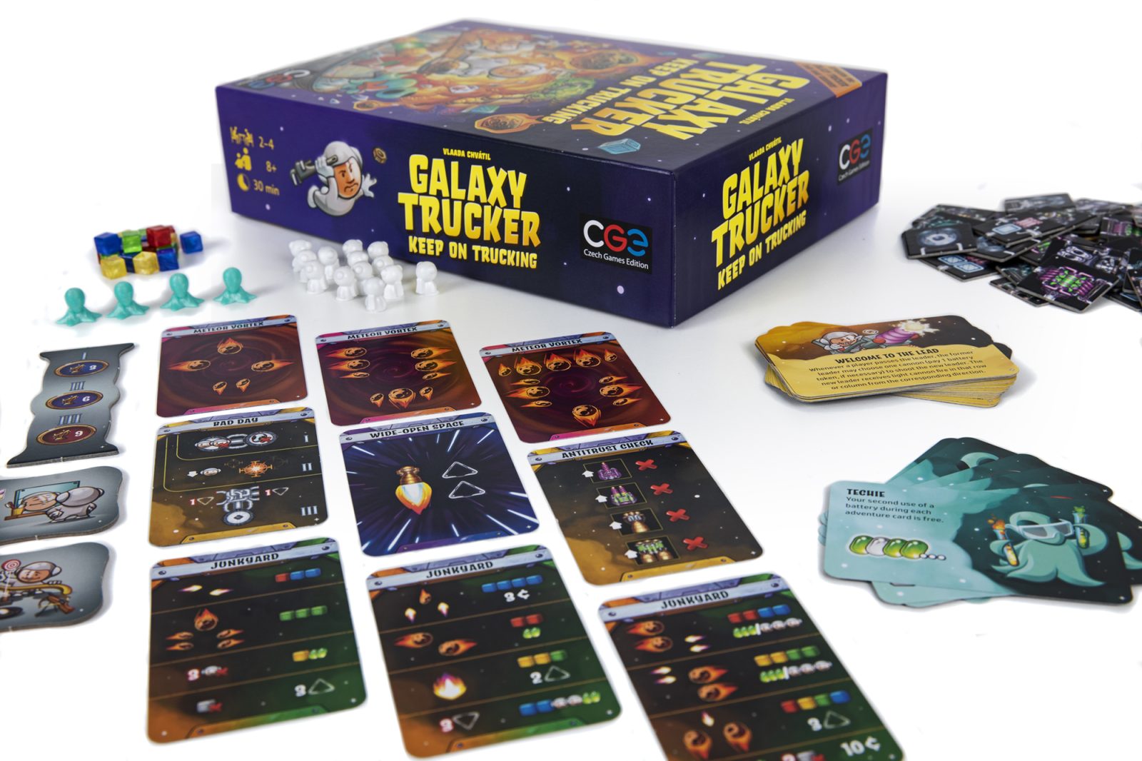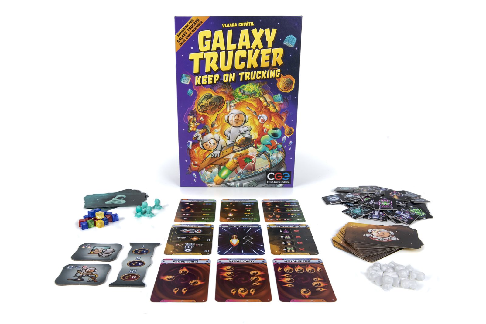 Galaxy Trucker: Keep on Trucking, a new expansion for the fast and goofy family game Galaxy Trucker, is now available in the USA. Keep on Trucking brings a ton of new content to the game, including new spaceship components, new cyan aliens, rough road cards, new spaceship types, and more. You can check out a trailer for the expansion above and read below for more details: