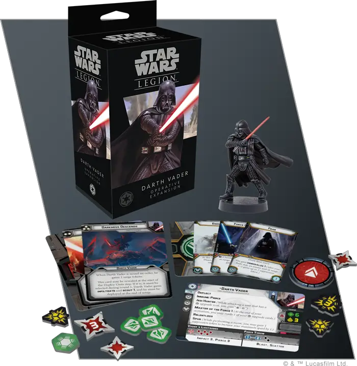 Fantasy Flight Games has announced the Darth Vader Operative Expansion for Star Wars: Legion coming in the fourth quarter of 2019. In this expansion players can add Darth Vader to their Imperial armies and work to crush the Rebellion forces. He will not only use his lightsaber, but will also harness the power of the Force itself as a weapon.