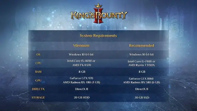 Additionally, 1C Entertainment can today unveil the minimum and recommended system configurations for PC players, helping you pick out the parts for a King’s Bounty II-ready system that delivers the experience you desire.