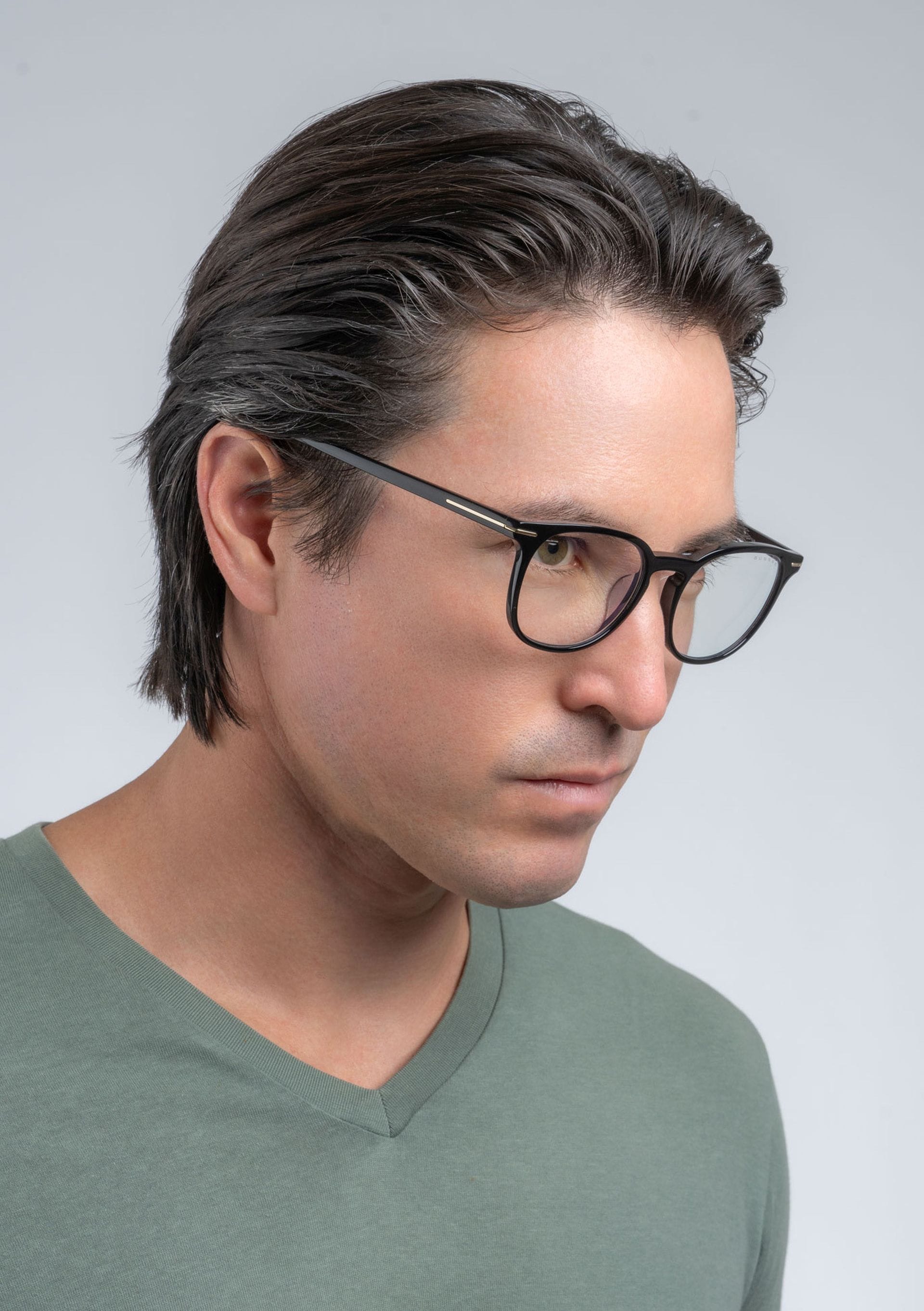 Barton – A clean, modern rectangular frame offered in Onyx and Sequoia