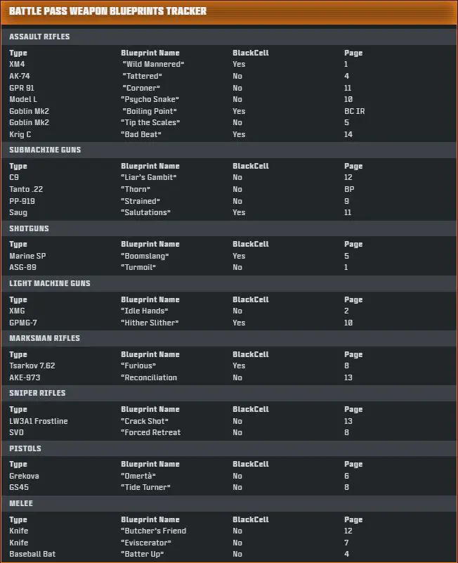 Season 01 Battle Pass Weapon Blueprints Tracker
