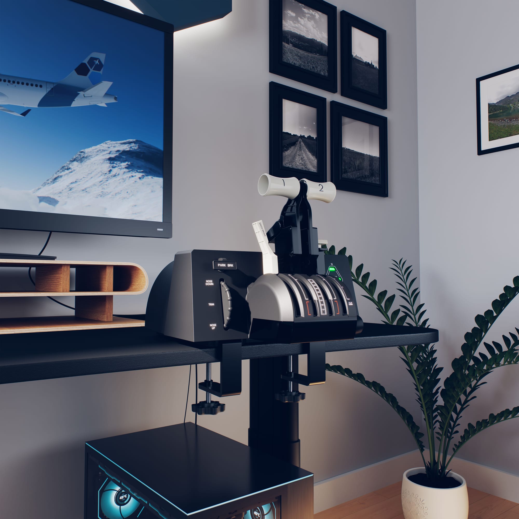 - Integrated Trim Wheel - make precise pitch adjustments with a smooth, high-resolution wheel designed to give you better control during climb, cruise, and approach without taking up extra space on your desk.