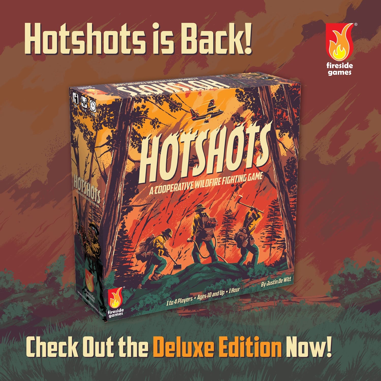 From the creators at Fireside Games comes a deluxe edition release of Hotshots, a cooperative, press-your-luck board game where players become an elite crew of firefighters battling a raging forest fire. The deluxe edition of Hotshots will launch on Kickstarter April 21, 2026.