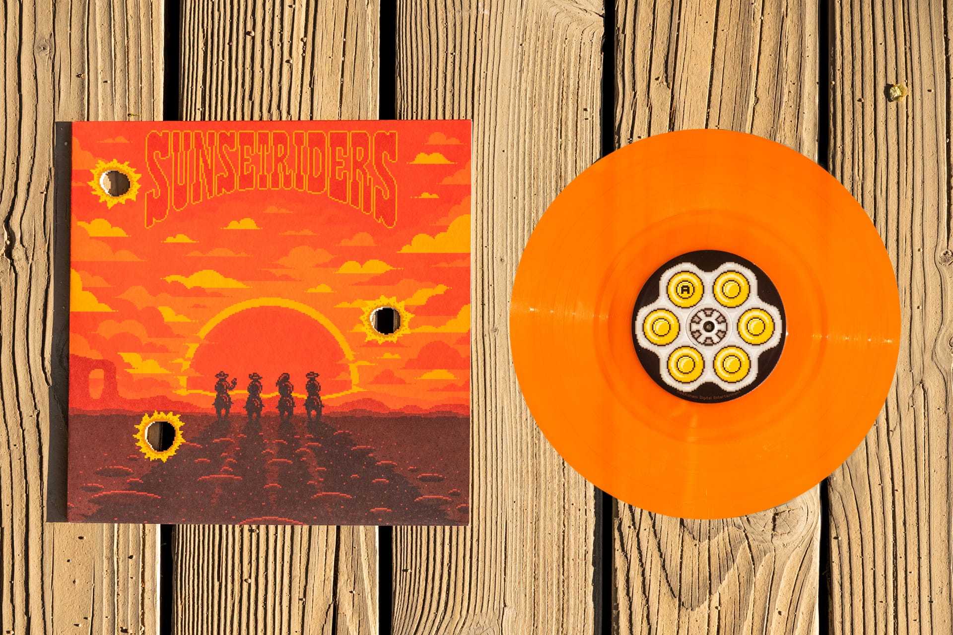 Many years ago, iam8bit and Konami came together to release the Sunset Riders 10” Vinyl Soundtrack, and it was an instant cult classic. The Sunset Riders 10” vinyl is back and ready to ride, freshly pressed on an Orange Crush vinyl. All 24 tracks are back, with an updated album art from Drew Wise, presented on a fresh die-cut bullet hole-riddled jacket. Available for $24.99.