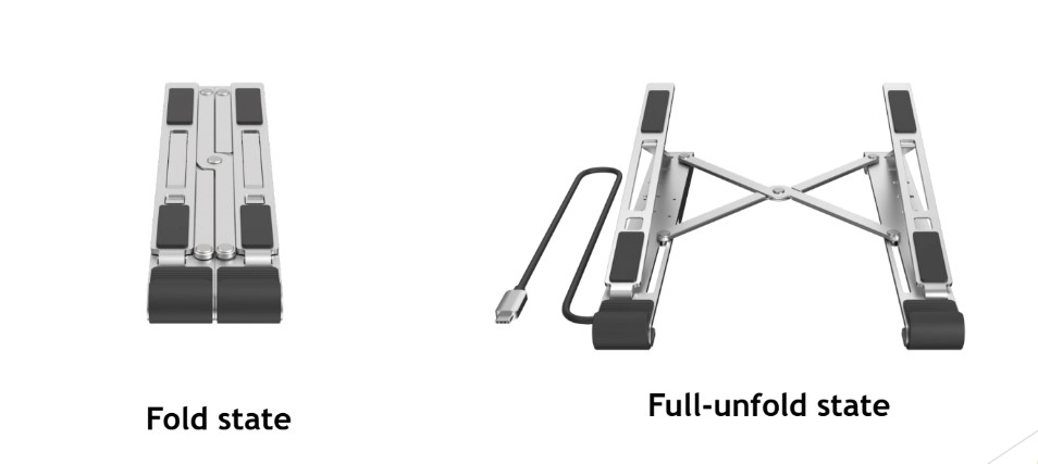 The last goodie, again uncreatively named “USB-C Docking Station Stand”, reminds me of the cheap $20 stand I use to keep my laptop elevated and angled to maximize airflow…but it has a whole lot hidden inside. Folding up neatly to fit in a backpack, this little device has an HDMI port, two USB-A 5Gbps ports, a USB-C port for data (5Gbps) and another for PD charging at up to 100W pass-through charging, and a gigabit RJ45 jack. Unlike my cheapy dock, this one also has five adjustment points from 15 to 36 degrees to fit any position you might find comfortable. No price was announced for this ultra-compact wonderdock, but it’s set to ship in March of 2022.