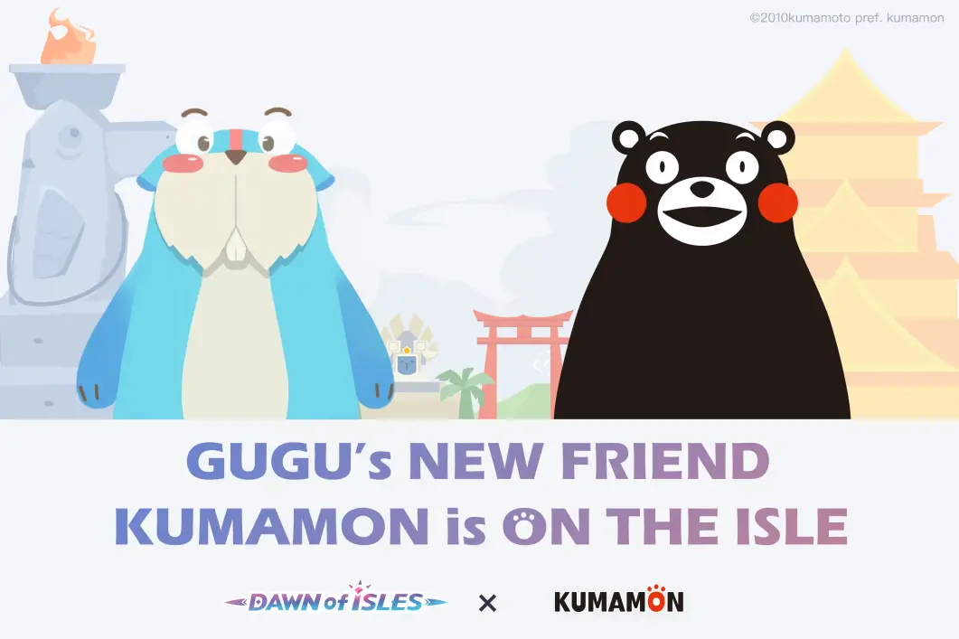 Announced at the fifth Annual Game “520 Game Enthusiasts’ Day” on May 20, the Dawn of Isles X KUMAMON Crossover Event will last for one month once the game releases with Kumamon, the popular Japanese black bear-like mascot featuring a prominent role.