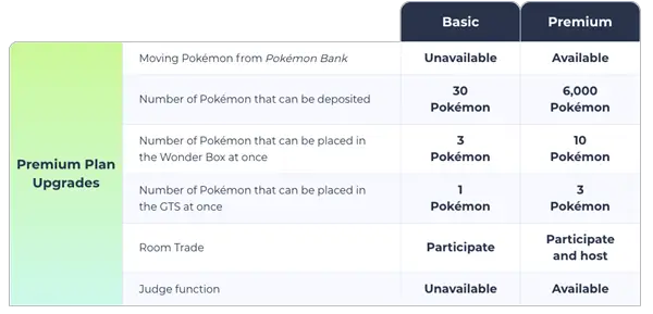 In addition to the upload function, there will be a premium membership priced at $2.99 per month or $15.99 per year that will allow players more features, like increasing the number of Pokémon that can be deposited to 6,000 and moving Pokémon from Pokémon Bank.
