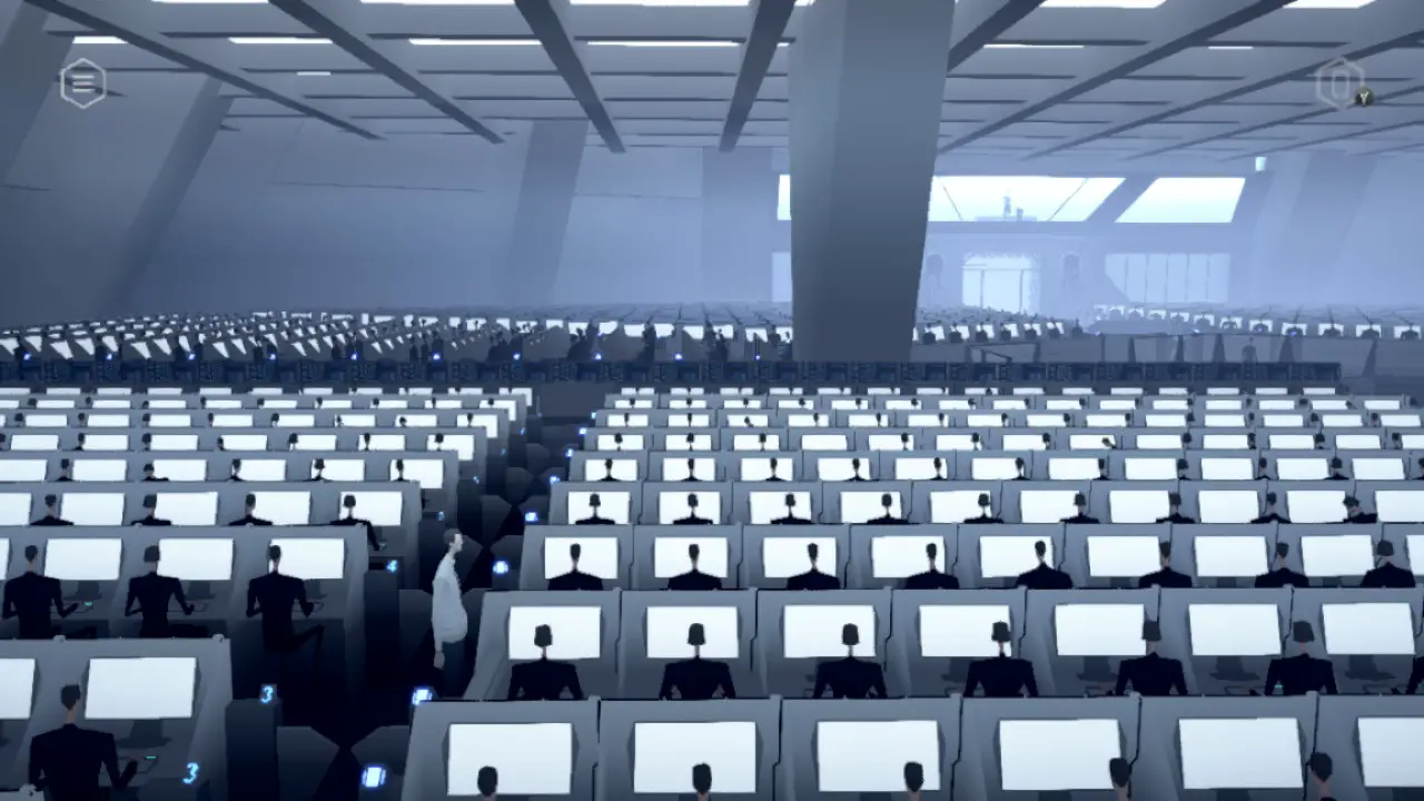 That said, the imagery in the game is poignant. From falling into a great body of water, swimming to the surface without being entirely sure which way is up, to rows upon rows of suit-clad figures staring silently at the glowing monitors at work. It’s brilliant, and strangely powerful with just the right combination of whimsy and soul-crushing. Your desire for human connection is severed.