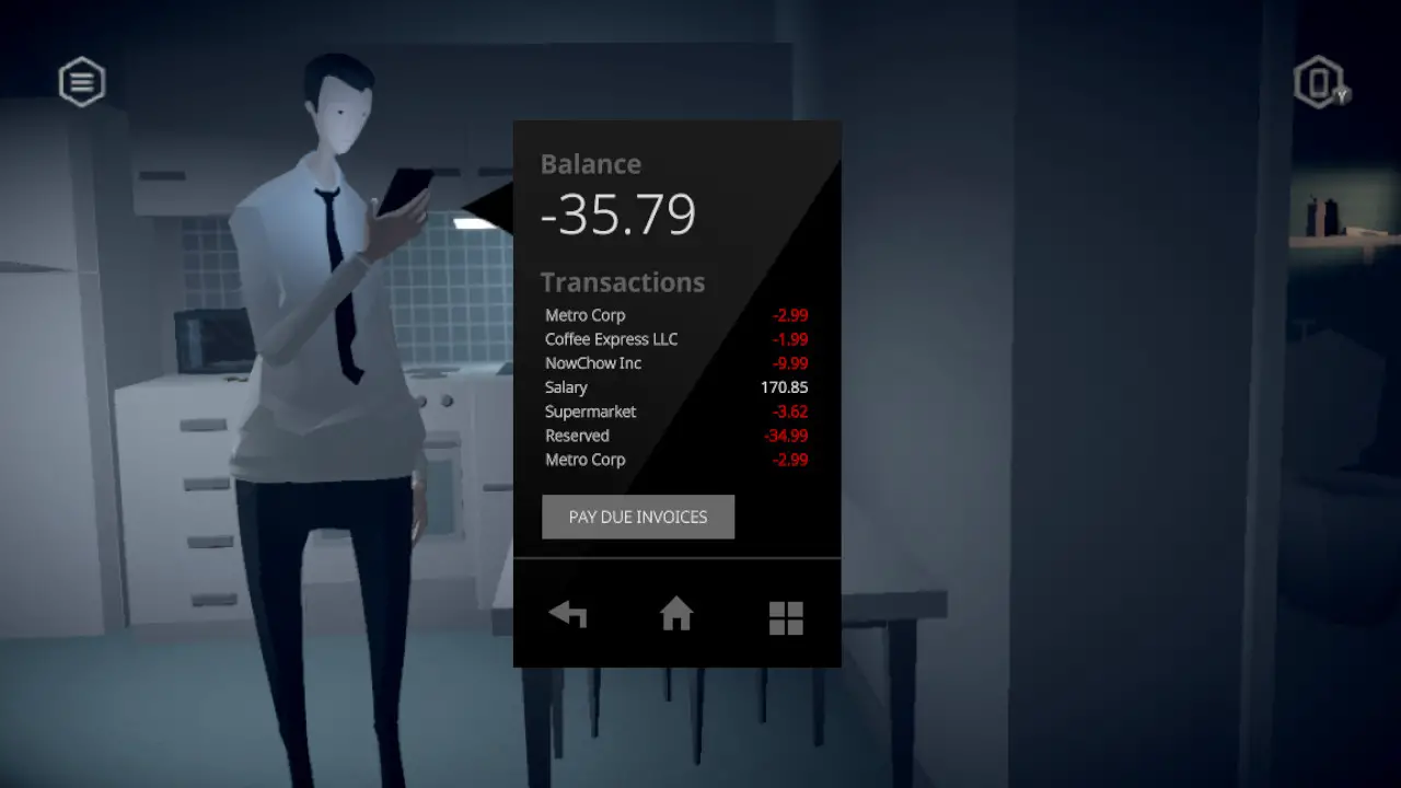 While this narrative is strong, not every aspect of the game shines quite as brightly. Mechanics, at some points, are so unclear that I had to turn to the Internet, looking at videos and walkthroughs to understand what was supposed to be accomplished with the strange set of tools I found myself manipulating. Even having played through the game three times and watched the playthroughs of two other people, I still am unsure how to activate a ‘loophole’ mechanic inside the job minigame.
