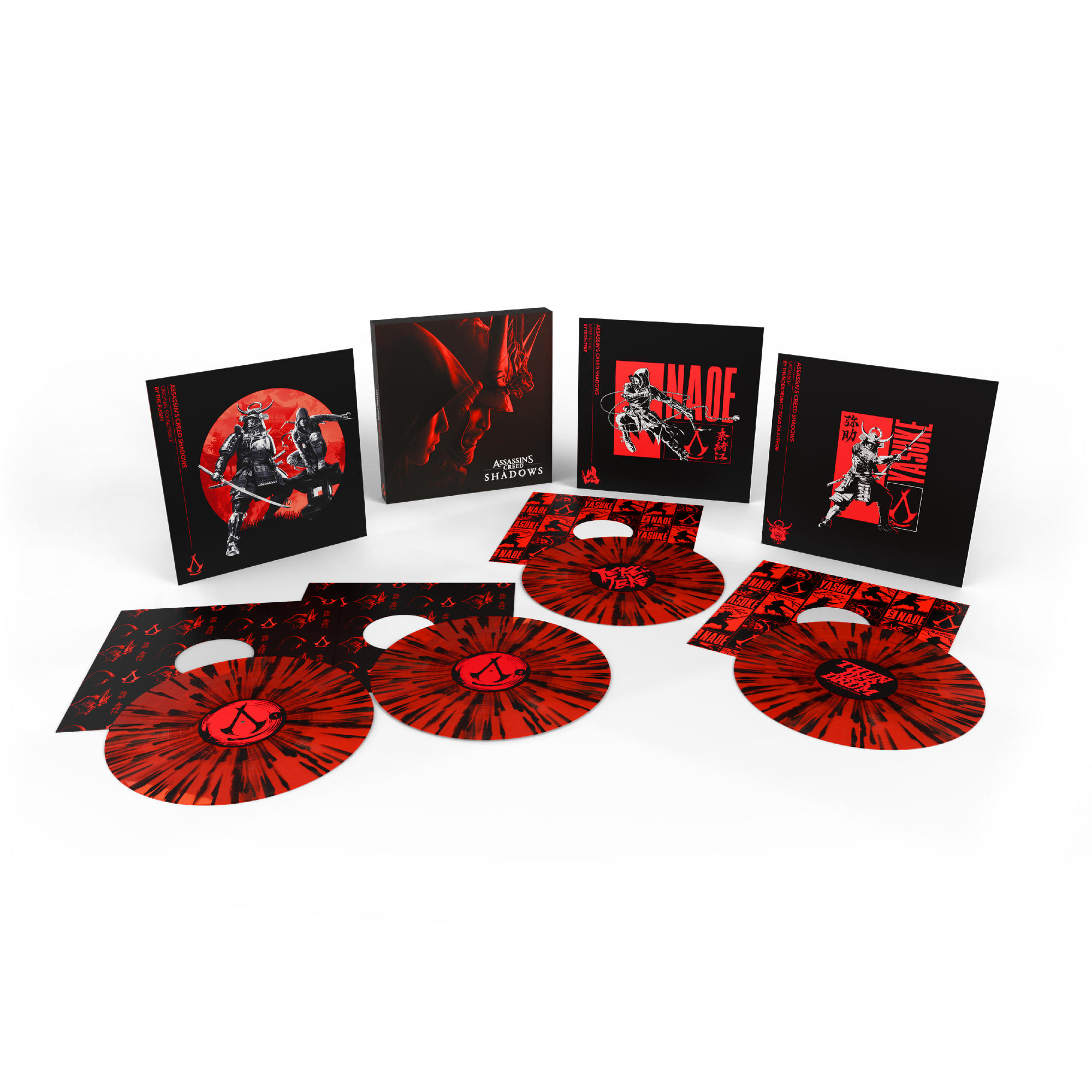 Pre-orders are now open for the Assassin’s Creed Shadows – Soundtrack Collection Limited Edition 4LP box set (exclusive to www.lacedrecords.com) featuring 44 specially mastered tracks on translucent red and black splatter discs. The set includes three albums created for the game: the original score and two sets of songs focused on the game’s protagonists, blending psychedelic rock with Japanese sounds and instruments.