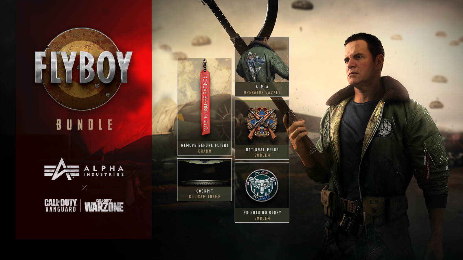 The jacket is available in very limited quantities via the Alpha Industries website at a $300 price point, while a digital jacket version can be found within Call of Duty: Vanguard’s in-game Flyboy Bundle at 1100 COD Points. The in-game operator skin is an exact replica to the physical jacket, making this collaboration unique in its accessibility to a wide range of fans wanting to don the jacket either physically or virtually. The in-game Flyboy Bundle includes the jacket as a new Operator Skin (that will also unlock the Operator), a Killcam Vanity, and an MVP Highlight, which are only usable in Vanguard.