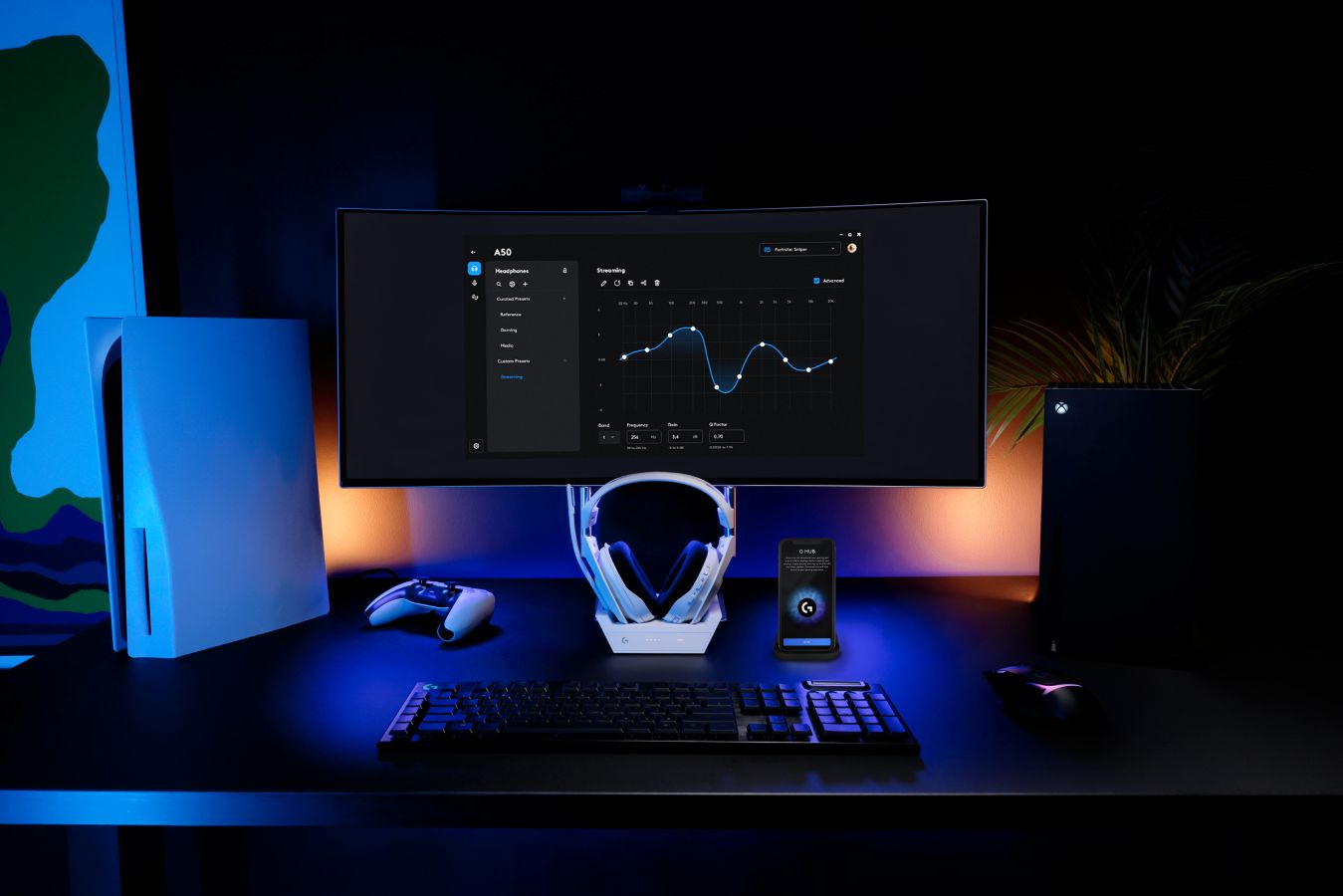 Gamers can optimize and fine-tune their audio experience using G HUB on PC and the Logitech G App on iOS/Android devices. They can control headset EQ presets or delve into the fully parametric EQ for detailed adjustments that stay with their headset even when switching between systems, thanks to onboard 7-core DSP processing. With extended microphone resolution, users can achieve broadcast-quality EQ settings and manage their environment with noise reduction. Additionally, gamers can set up stream output audio mixing, adjust sidetone levels, save custom presets, and more.