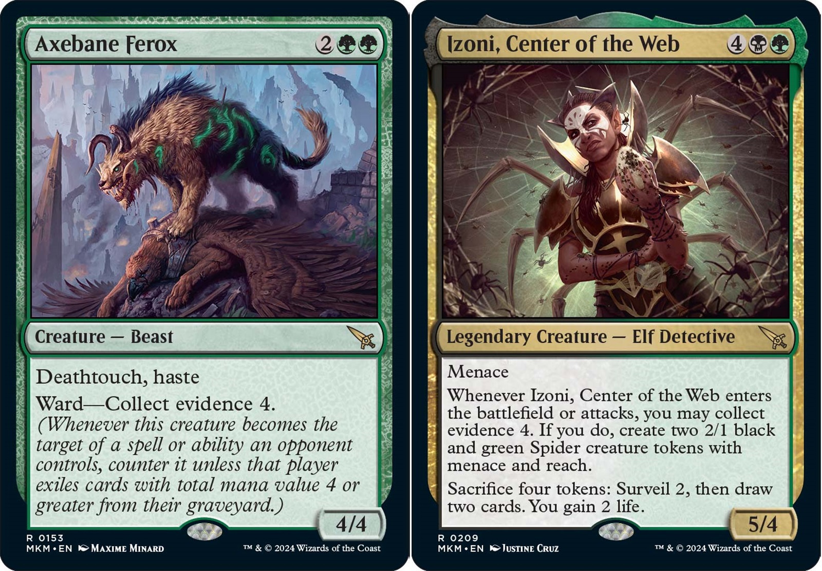Collect Evidence is another new mechanic. You can solve a mystery in your head, but nothing is as important as hard evidence when bringing the guilty to justice. To collect evidence, exile any number of cards from your graveyard with total mana value of the indicated number or greater. Some cards even unlock alternative effects when entering the battlefield, “if evidence was collected.”