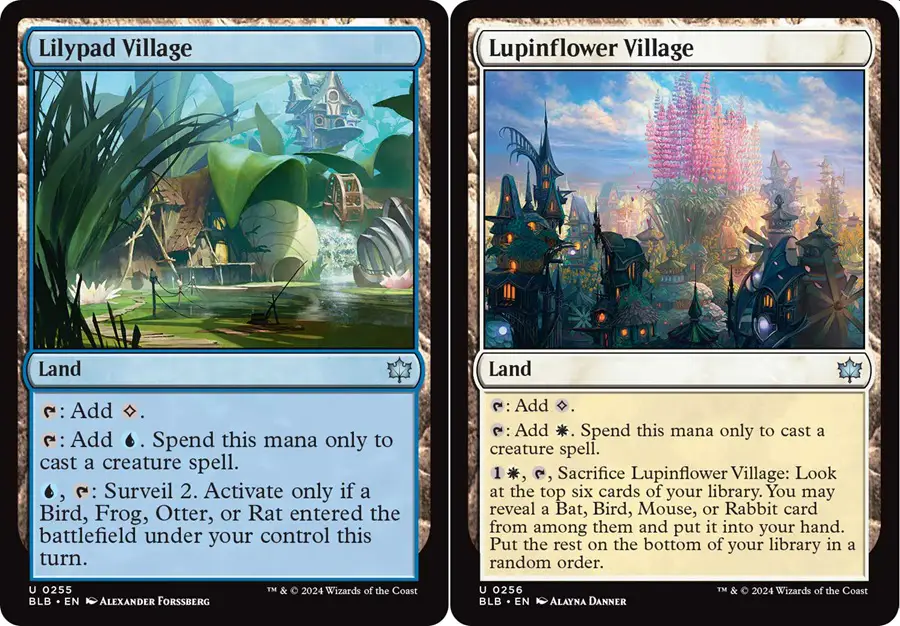 Arriving August 2nd, 2024 Bloomburrow features tiny animals banding together to protect their homes. MagicCon Amsterdam previewed cards to wet the appetite of players waiting for Bloomburrow. Bloomburrow’s draft environment will center around the 10 major creature types and the village cycle of cards shows which creature types go with each color. I almost wish Bloomburrow was after Duskmourn as I think we’re going to need a happier tone after Duskmourn, but I’m particularly interested in how Bloomburrow’s color pairing will work.