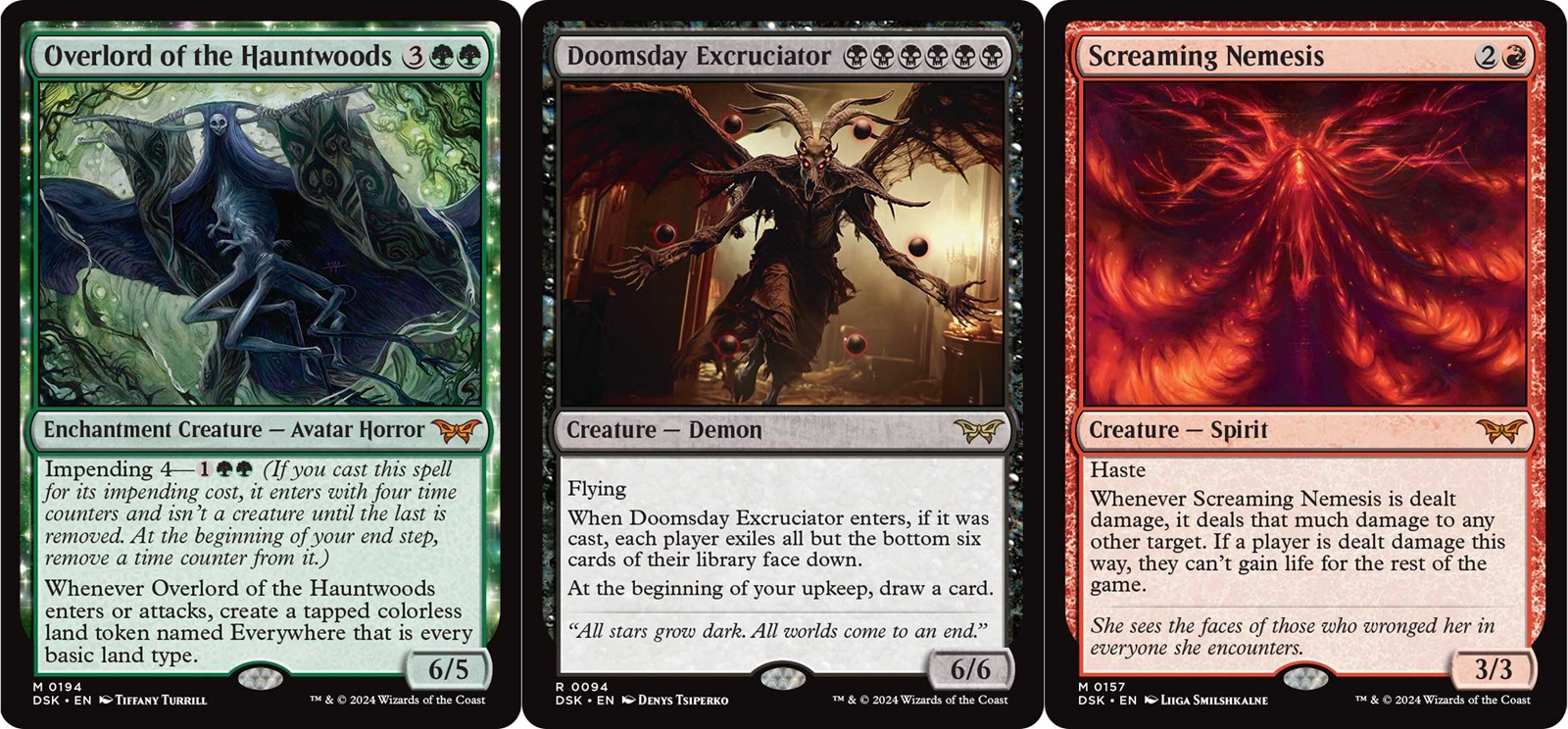 A love letter to 80s horror, Duskmourn: House of Horror arrives September 27th, 2024. The entire plane is inside the house with no exterior. As a fan of horror I’m particularly excited to see another horror inspired set. Archenemy returns to the Commander format with Duskmourn with scheme cards added into the Duskmourn Commander decks. Archenemy is a 3vs1 multiplayer format that feels perfect for a horror set. A bunch of cards for Duskmourn were shown off at MagicCon Amsterdam and the set is filled with powerful effects: