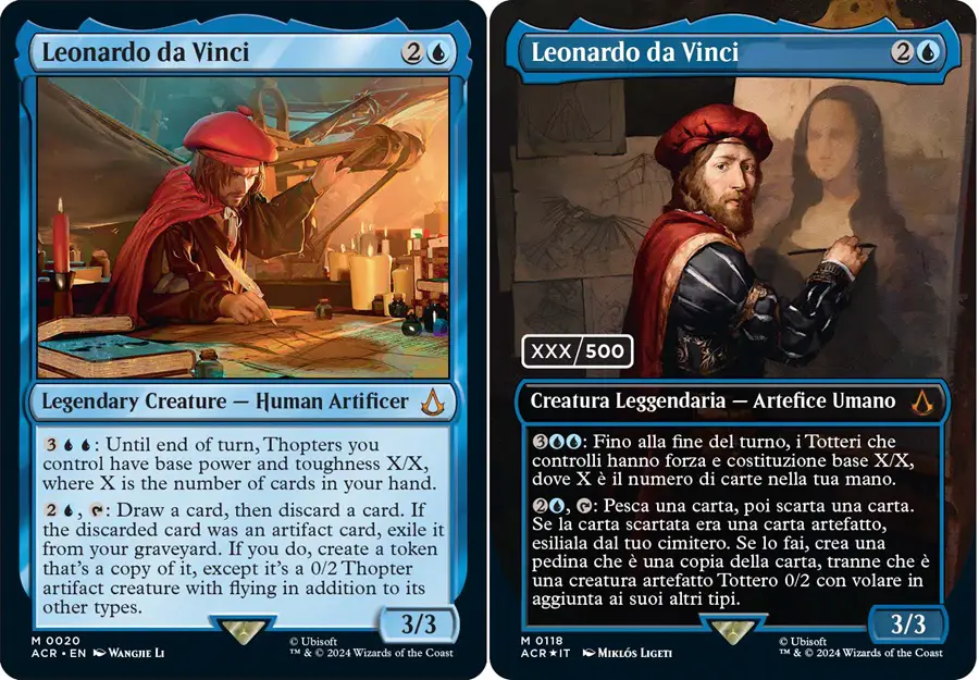 Because Assassin’s Creed features real world historical figures, for the first time in many years Magic will have cards referencing actual historical figures. These cards will even have serialized versions in their native script.