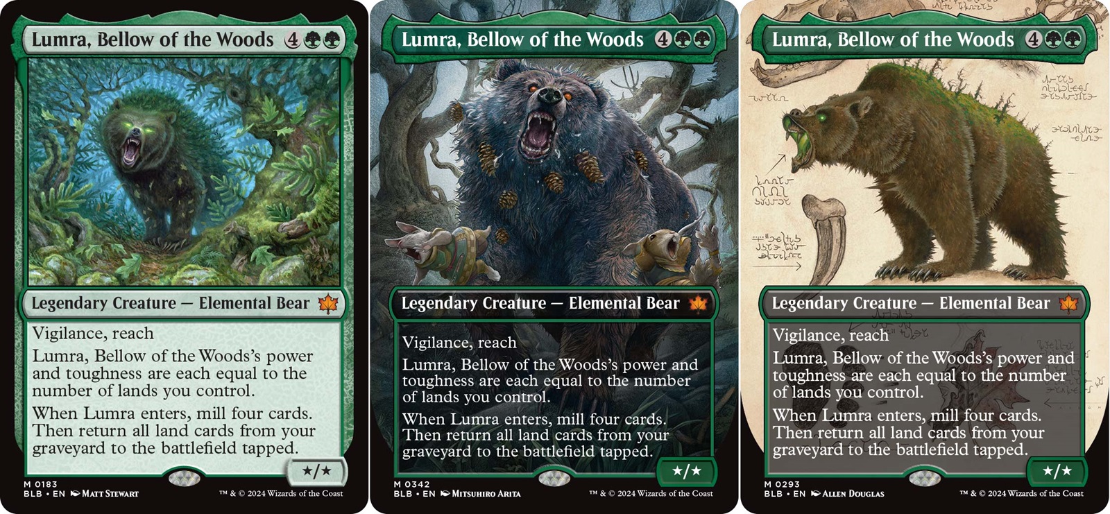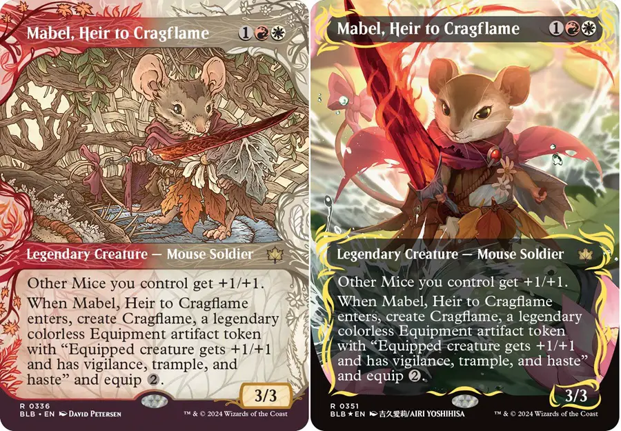 Bloomburrow will be the second set to feature no humans. All of the characters are anthropomorphized animals. The story of Bloomburrow follows Mable recruiting a team of heroes to save their world from the elemental calamity beasts. Here we can see the different frames that will be available: