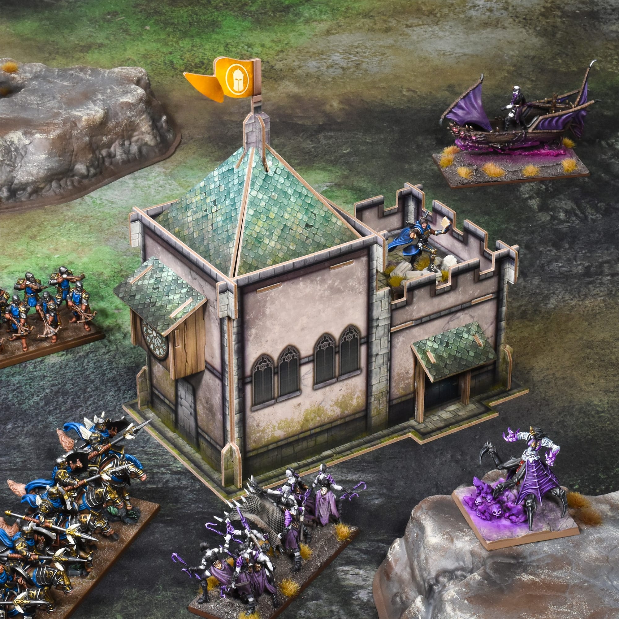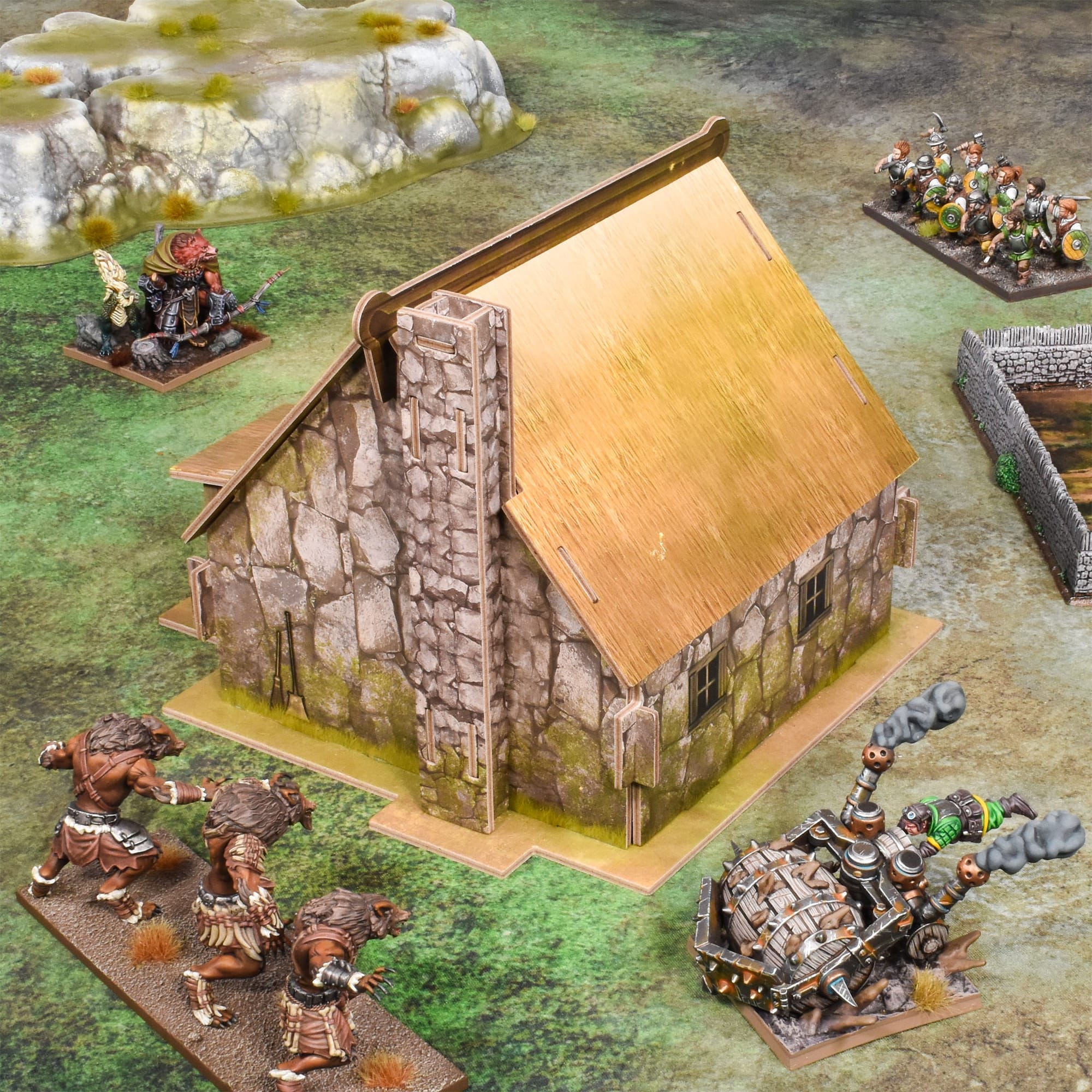 The company has also branched out into its first card buildings for fantasy settings, following the success of the Halo Universe card terrain sets that debuted within Mantic’s best-selling Halo Flashpoint range. The new fantasy set contains a chapel, stone cottage, and three-storey-townhouse. All these buildings are easy-to-assemble, pre-coloured, and fit once again with the TerrainCrate ethos of high visual impact without relying on any advanced or time-consuming hobby skills to get them on the table.