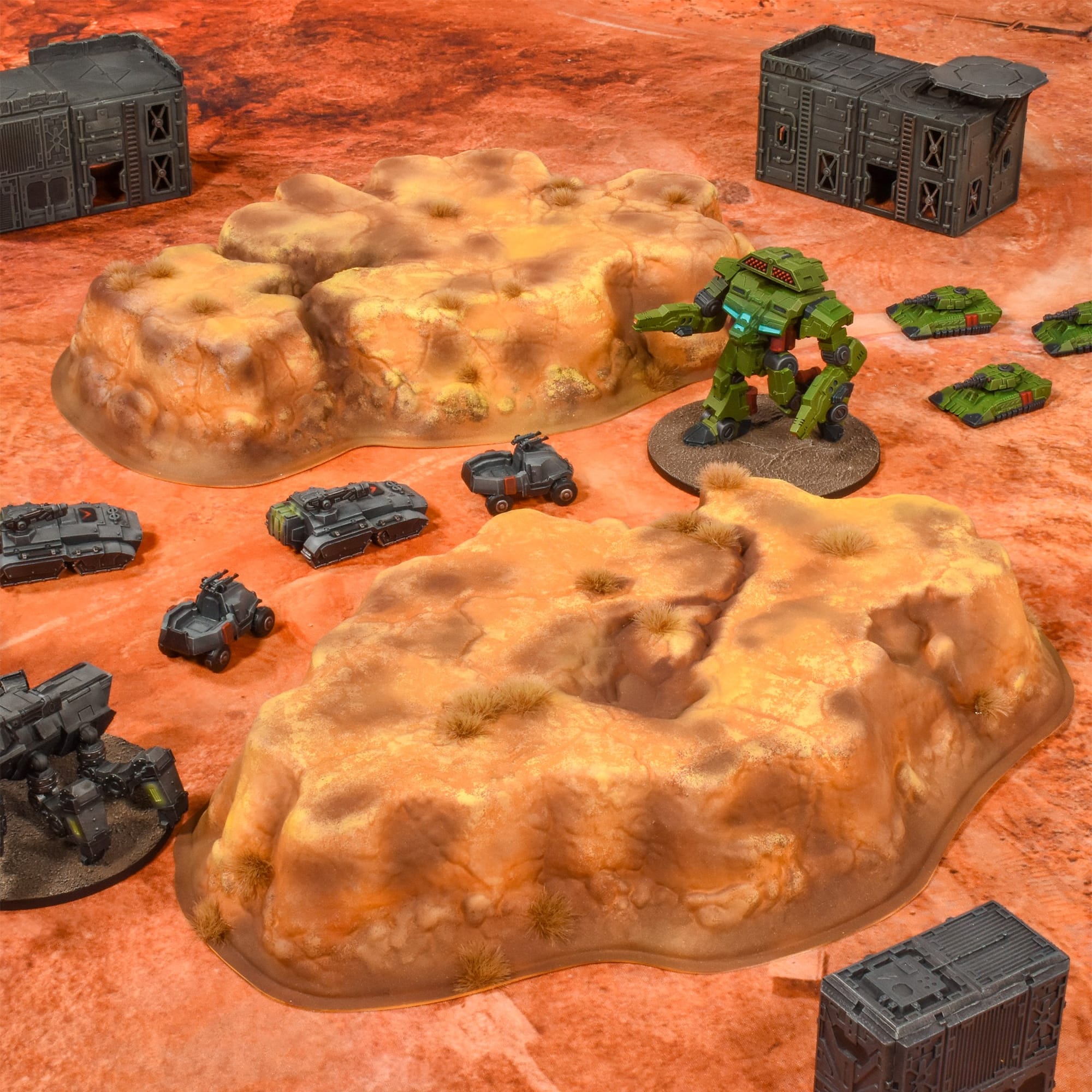 Several of these elements are also available separately, including the new single-piece plastic hills, which Mantic expects to be popular across a very wide range of both scales and genres. From usage as hills at 28-32mm scale, to strategic plateaus for epic-scale games, and even islands for naval battles, these detailed new plastic hills are perfect for an incredibly versatile range of games.