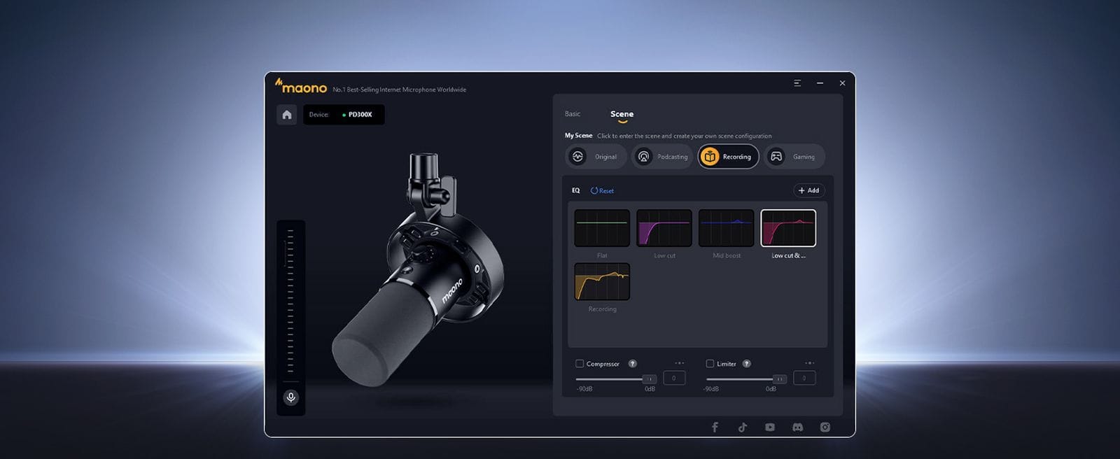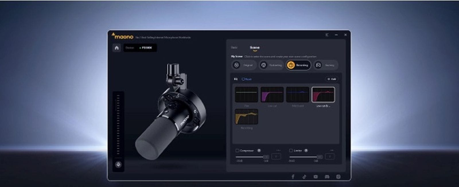 The PD300X integrates seamlessly with Maono’s updated MaonoLink software, offering an intuitive and customizable audio experience. MaonoLink includes a robust suite of tools, such as limiters, compressors, and high-pass filters, streamlines the workflow for efficient and professional audio processing. The upgraded visual graphic EQ panel makes it intuitive to shape and fine-tune your audio profile. Parameter customization empowers users to explore their unique sound and achieve a personalized tone. These enhancements provide creators with greater flexibility and control, making professional-quality audio production more accessible than ever.