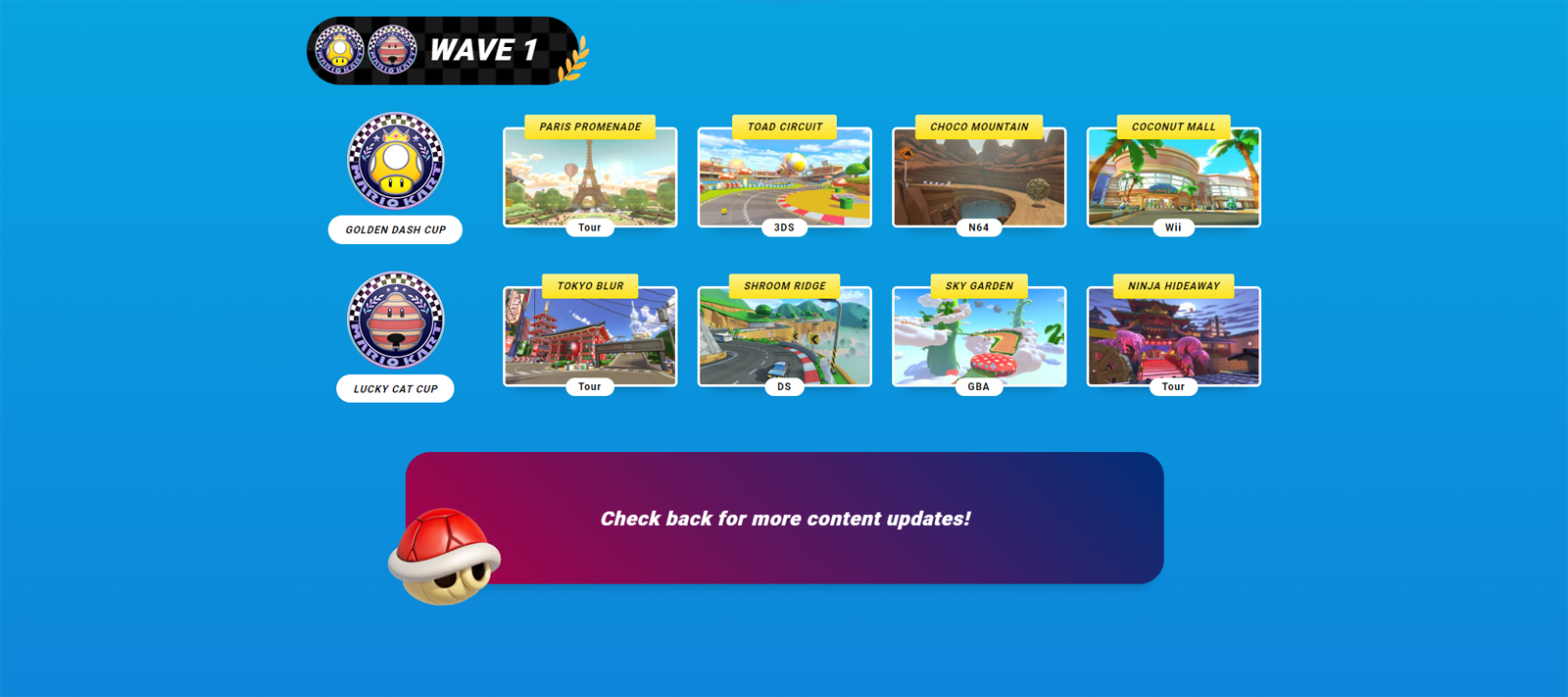 The first Booster Course Pass features the Golden Dash Cup and Lucky Cat Cup. These are the courses in each cup: