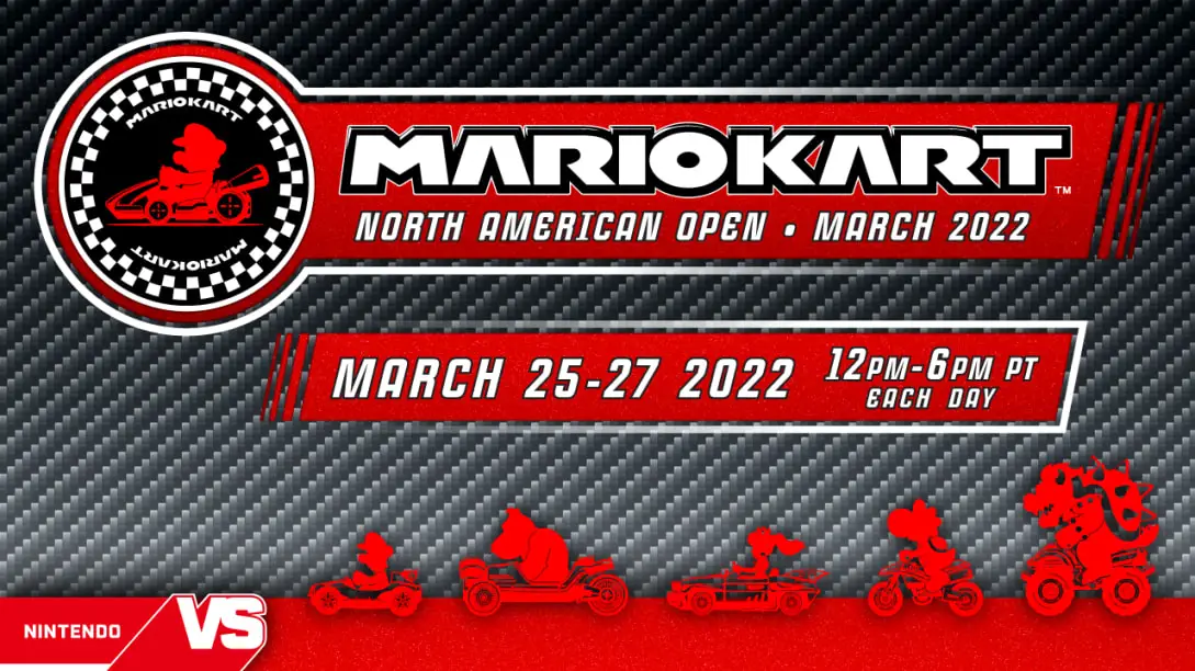 Nintendo announced the latest tournament in their ongoing Open series. The Mario Kart North American Open starts exactly one week after the first Booster Course Pass becomes available. The Open is slated for March 25-27 and anyone with Mario Kart 8 Deluxe can participate (Mario Kart 8 owners cannot participate). For three days, players login using designated codes and compete against other online players for the most points. Each day the tournament starts at 12 PM Pacific and ends at 6 PM Pacific, and the top eight players from each day will win 2500 My Nintendo Gold Points. To participate in the tournament, make sure to enter the correct code for each day.