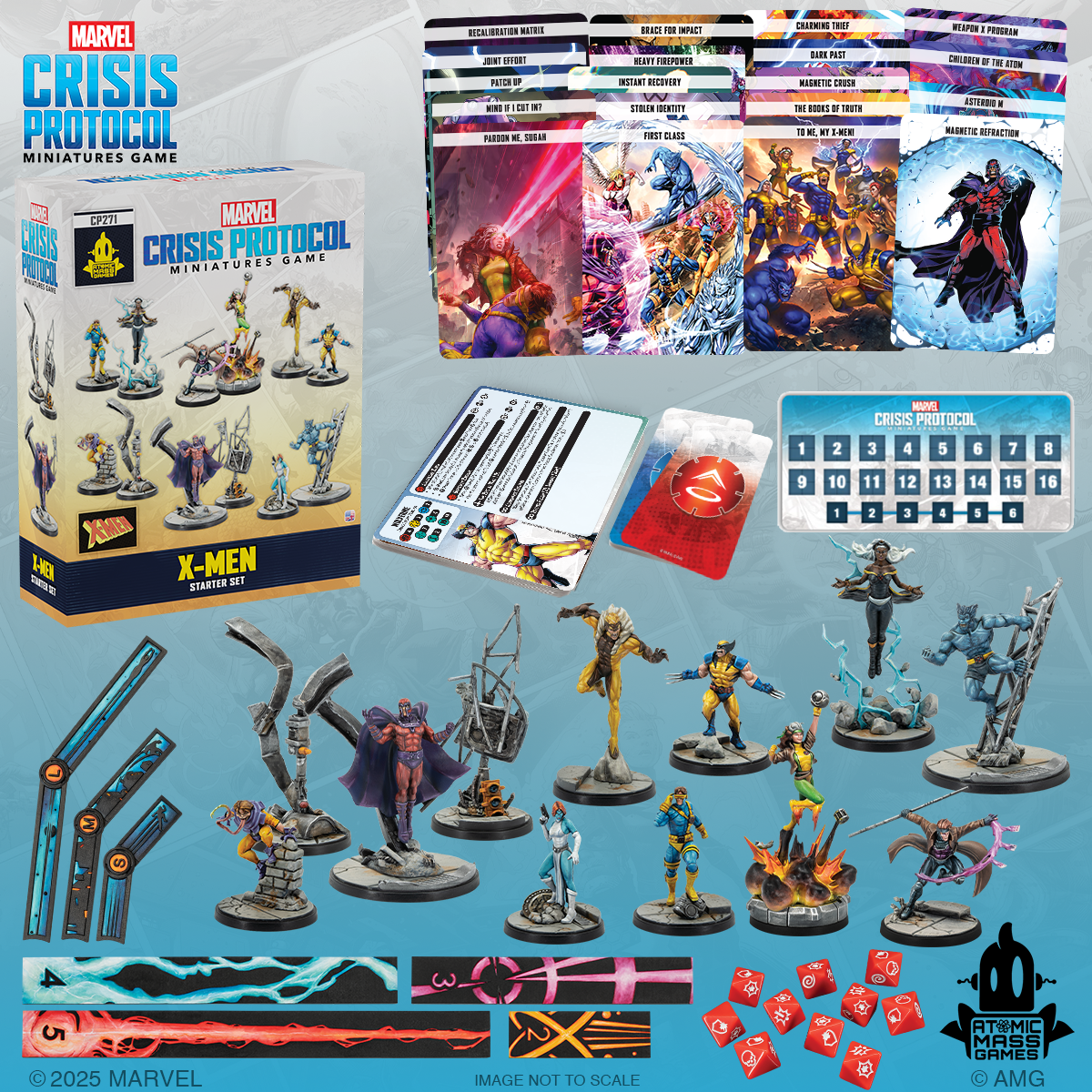 A full roster of some of the most iconic heroes and villains from Marvel’s X-Men are joining forces to show their foes the true power of mutantkind! This Starter Set contains all the miniatures, Character Stat Cards, and Team Tactic Cards for the following characters: Cyclops, Wolverine, Storm, Beast, Rogue, Gambit, Magneto, Toad, Mystique, and Sabretooth. Also included are Crisis Cards and all the tokens, measuring tools, and dice needed to play. Players interested in getting into Marvel: Crisis Protocol will find that Starter Sets are the perfect starting place for a single player.