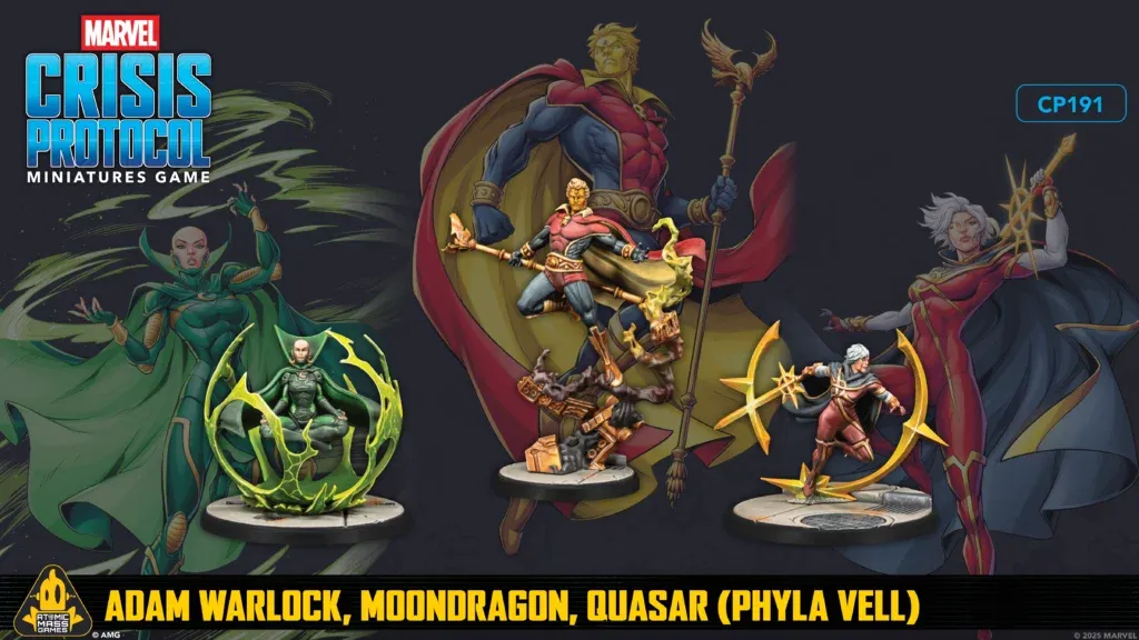 The Cosmic side of Marvel gets another look at Adam Warlock, Moondragon, and Quasar, whom we first saw at Adepticon. The sculpts look amazing, and one could expect some heavy hits from Warlock, one of the most powerful Marvel characters.