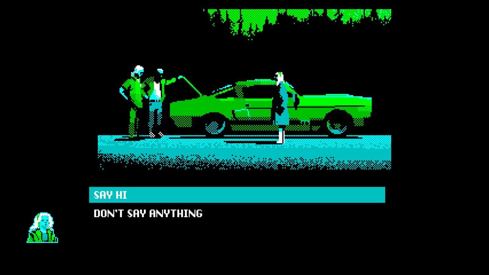 Rendered in a gorgeous 8-bit aesthetic reminiscent of ‘80s home computers like the ZX Spectrum and scored with an otherworldly lo-fi soundtrack, Mothmen 1966 quickly establishes an uncanny atmosphere.